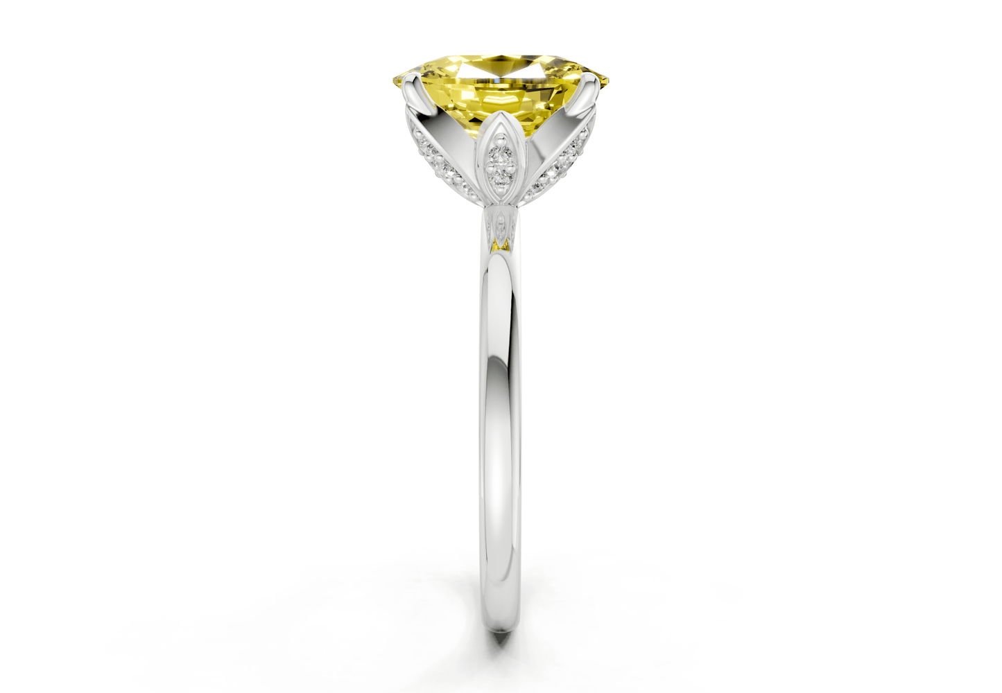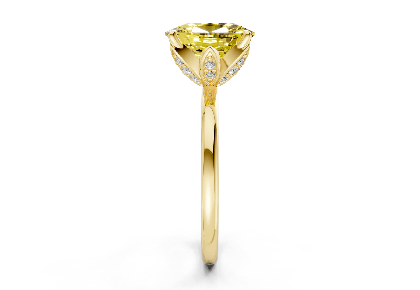 The Skye Yellow Diamond solitaire ring features a stunning Elongated Cushion-cut Yellow diamond in a sleek, minimalist setting. Designed to let the diamond shine, this piece embodies modern sophistication with timeless appeal. Perfect for those who appreciate refined simplicity, with the option for custom engraving to make it uniquely yours.