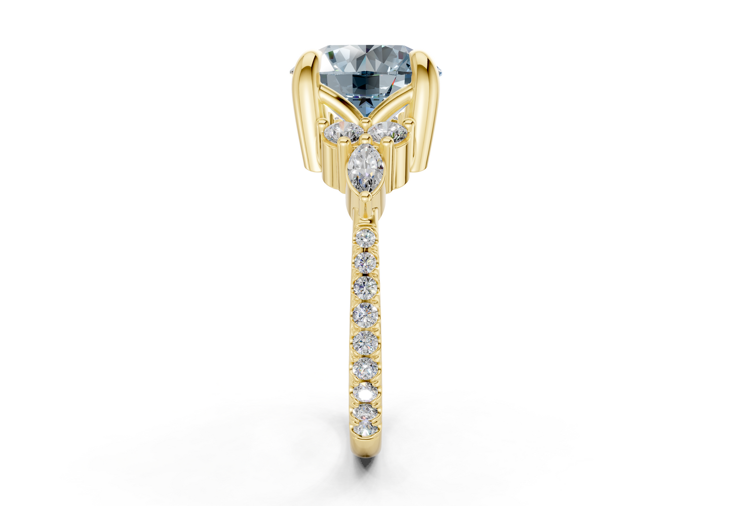 The Zephyrine Blue Diamond ring highlights a stunning touch of sparkle, making it a perfect choice for anyone seeking a refined yet timeless look. Custom engraving options are available for a personal touch. Round-cut Blue diamond, set in a delicate accent setting that enhances its natural brilliance. Designed to appreciate sophistication, this ring beautifully balances modern style with classic charm. The carefully arranged accents add just the right