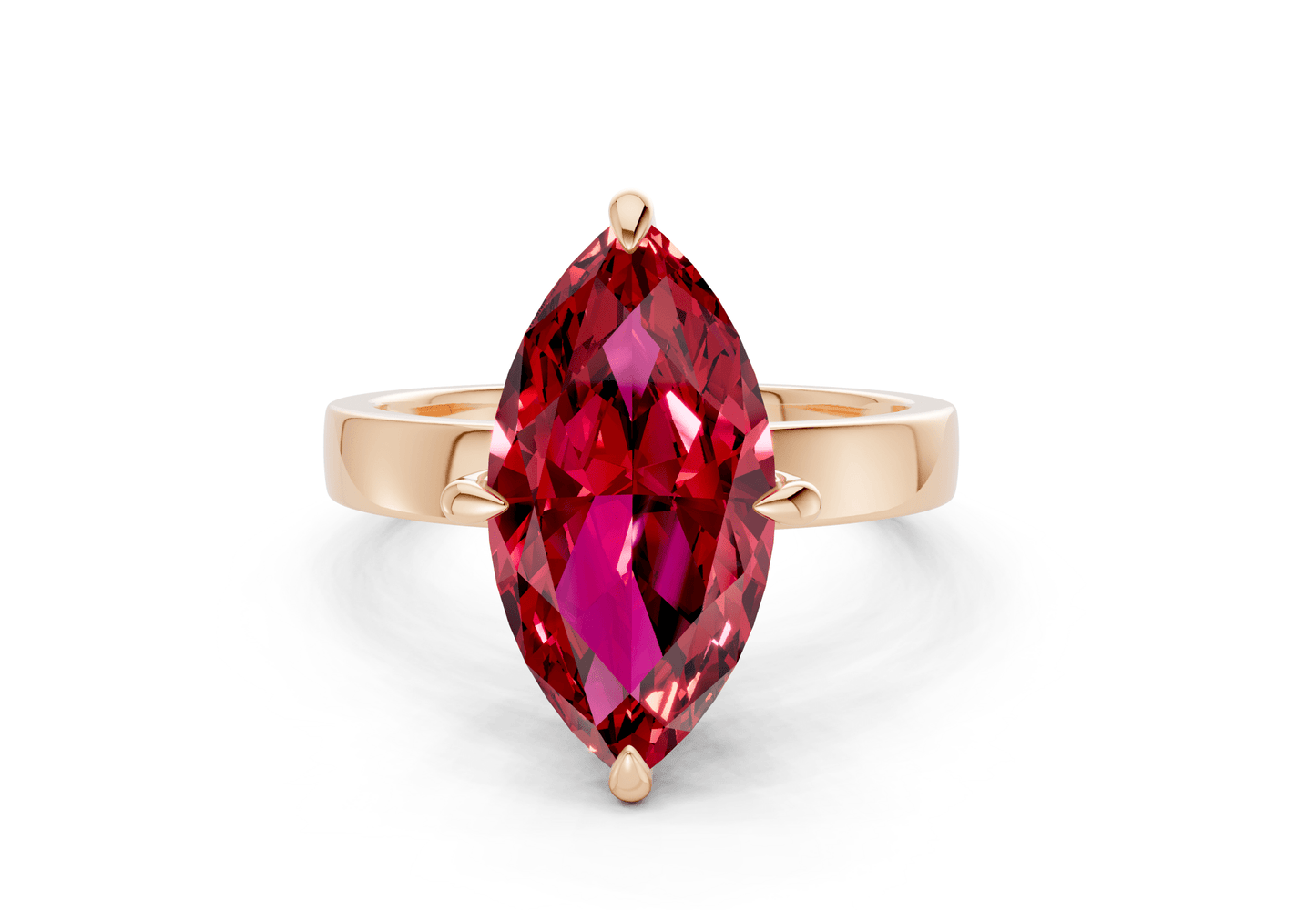 The Aspen Ruby Gemstone solitaire ring features a stunning Marquise-cut Ruby Gemstone in a sleek, minimalist setting. Designed to let the diamond shine, this piece embodies modern sophistication with timeless appeal. Perfect for those who appreciate refined simplicity, with the option for custom engraving to make it uniquely yours.