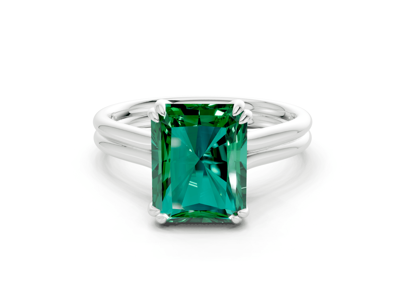 The Audrey Emerald Gemstone solitaire ring features a stunning Radiant-cut Emerald Gemstone in a sleek, minimalist setting. Designed to let the diamond shine, this piece embodies modern sophistication with timeless appeal. Perfect for those who appreciate refined simplicity, with the option for custom engraving to make it uniquely yours.