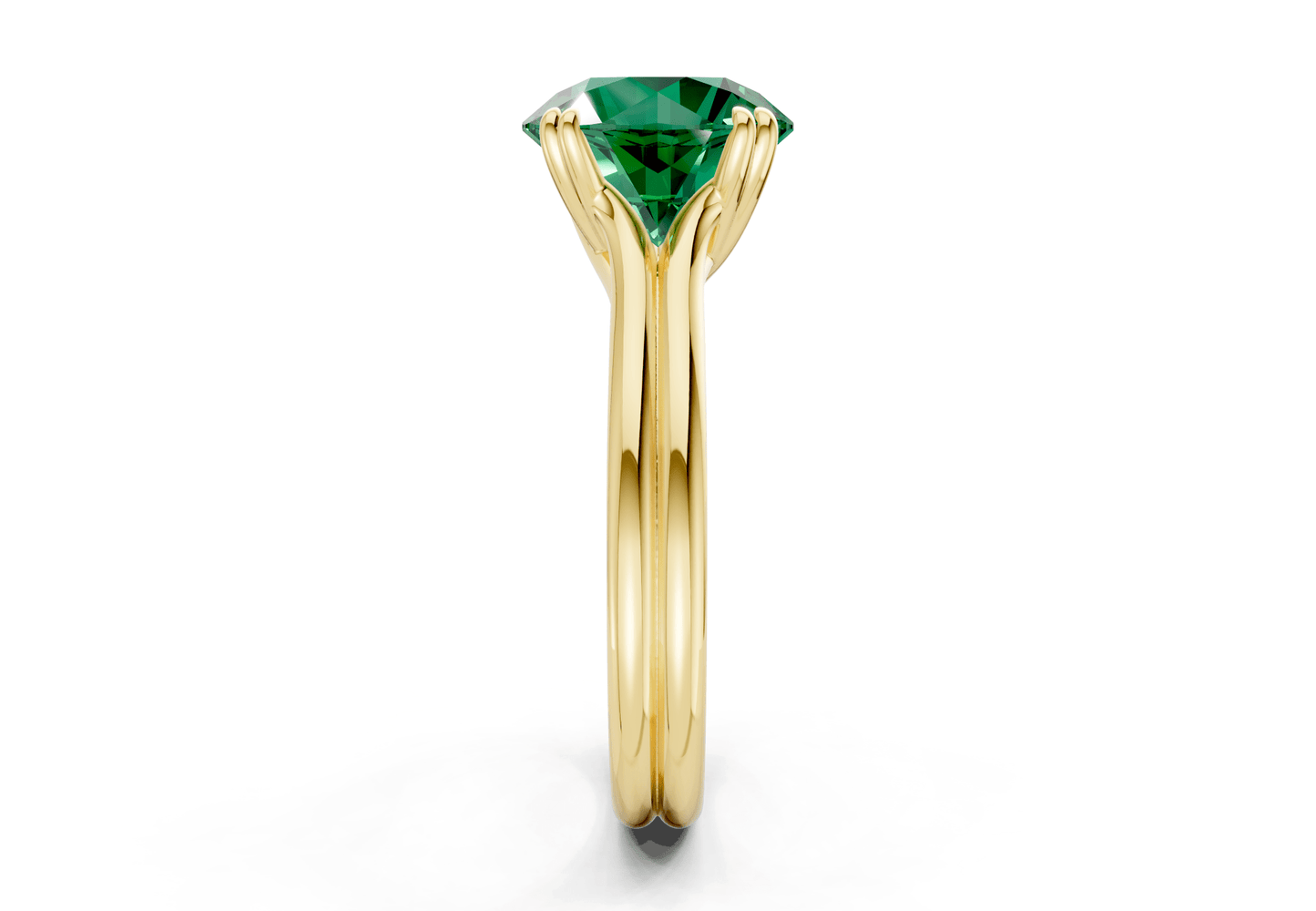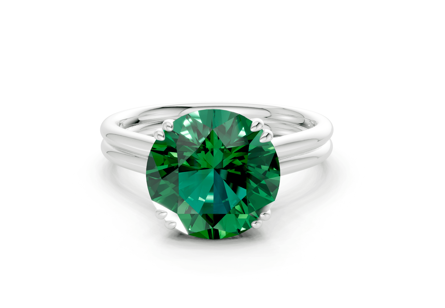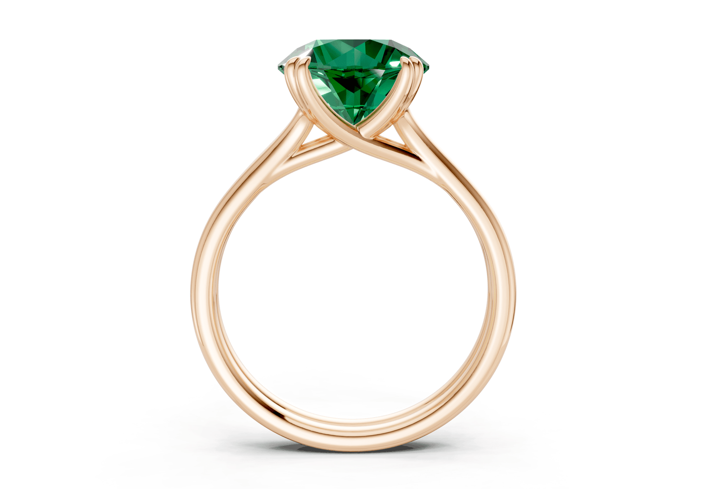 The Audrey Emerald Gemstone solitaire ring features a stunning Round-cut Emerald Gemstone in a sleek, minimalist setting. Designed to let the diamond shine, this piece embodies modern sophistication with timeless appeal. Perfect for those who appreciate refined simplicity, with the option for custom engraving to make it uniquely yours.