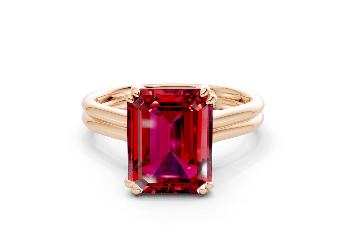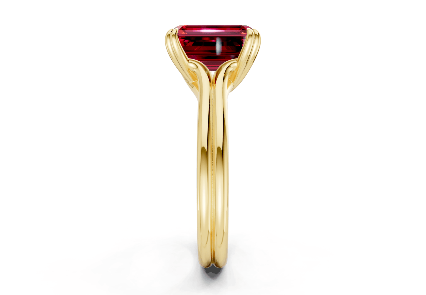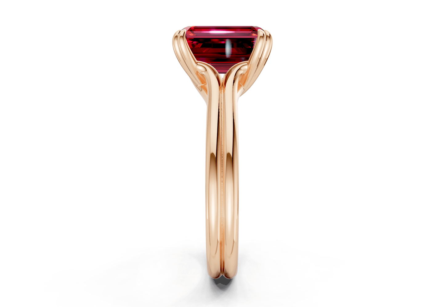 The Audrey Ruby Gemstone solitaire ring features a stunning Emerald-cut Ruby Gemstone in a sleek, minimalist setting. Designed to let the diamond shine, this piece embodies modern sophistication with timeless appeal. Perfect for those who appreciate refined simplicity, with the option for custom engraving to make it uniquely yours.