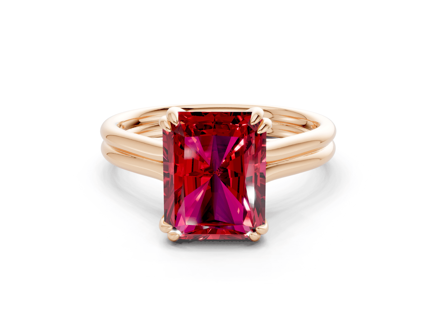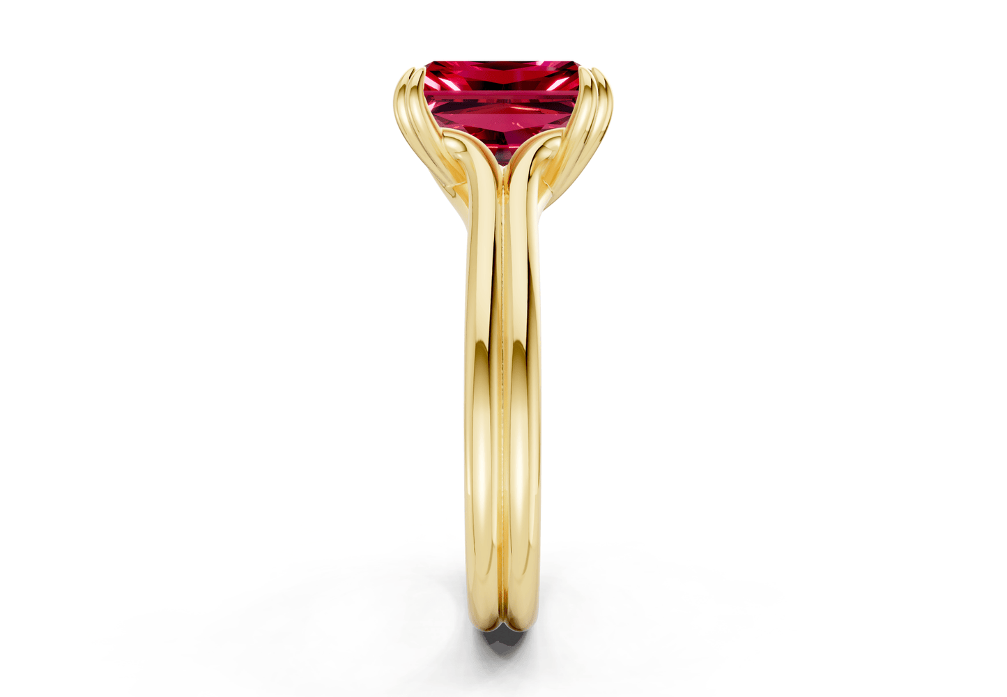 The Audrey Ruby Gemstone solitaire ring features a stunning Radiant-cut Ruby Gemstone in a sleek, minimalist setting. Designed to let the diamond shine, this piece embodies modern sophistication with timeless appeal. Perfect for those who appreciate refined simplicity, with the option for custom engraving to make it uniquely yours.