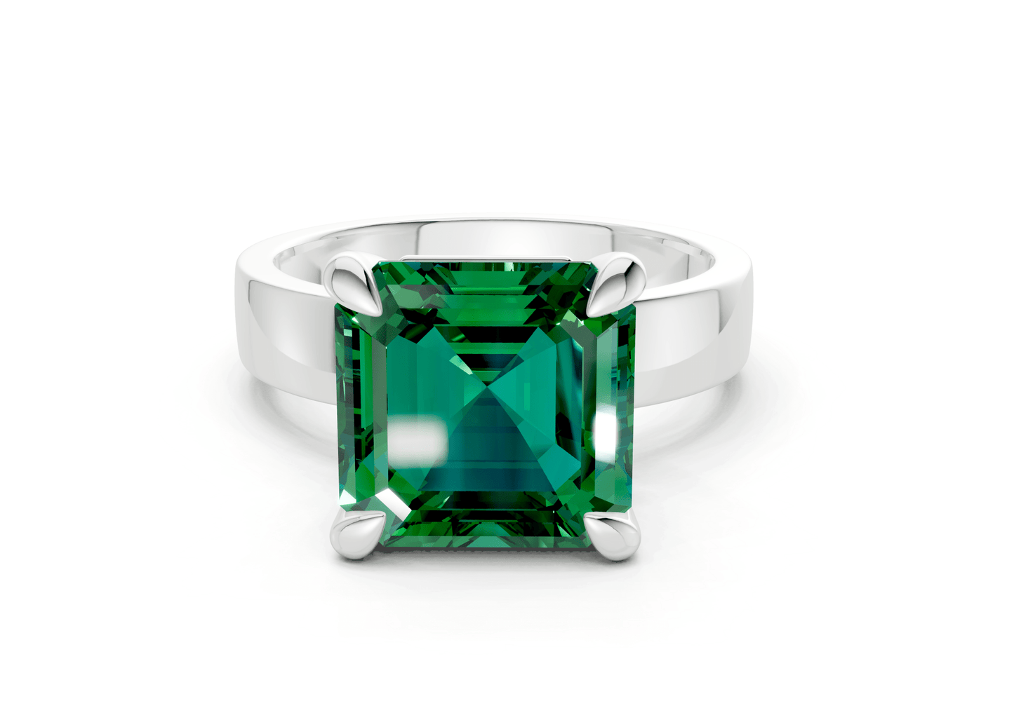 The Cascade Emerald Gemstone solitaire ring features a stunning Asscher-cut Emerald Gemstone in a sleek, minimalist setting. Designed to let the diamond shine, this piece embodies modern sophistication with timeless appeal. Perfect for those who appreciate refined simplicity, with the option for custom engraving to make it uniquely yours.