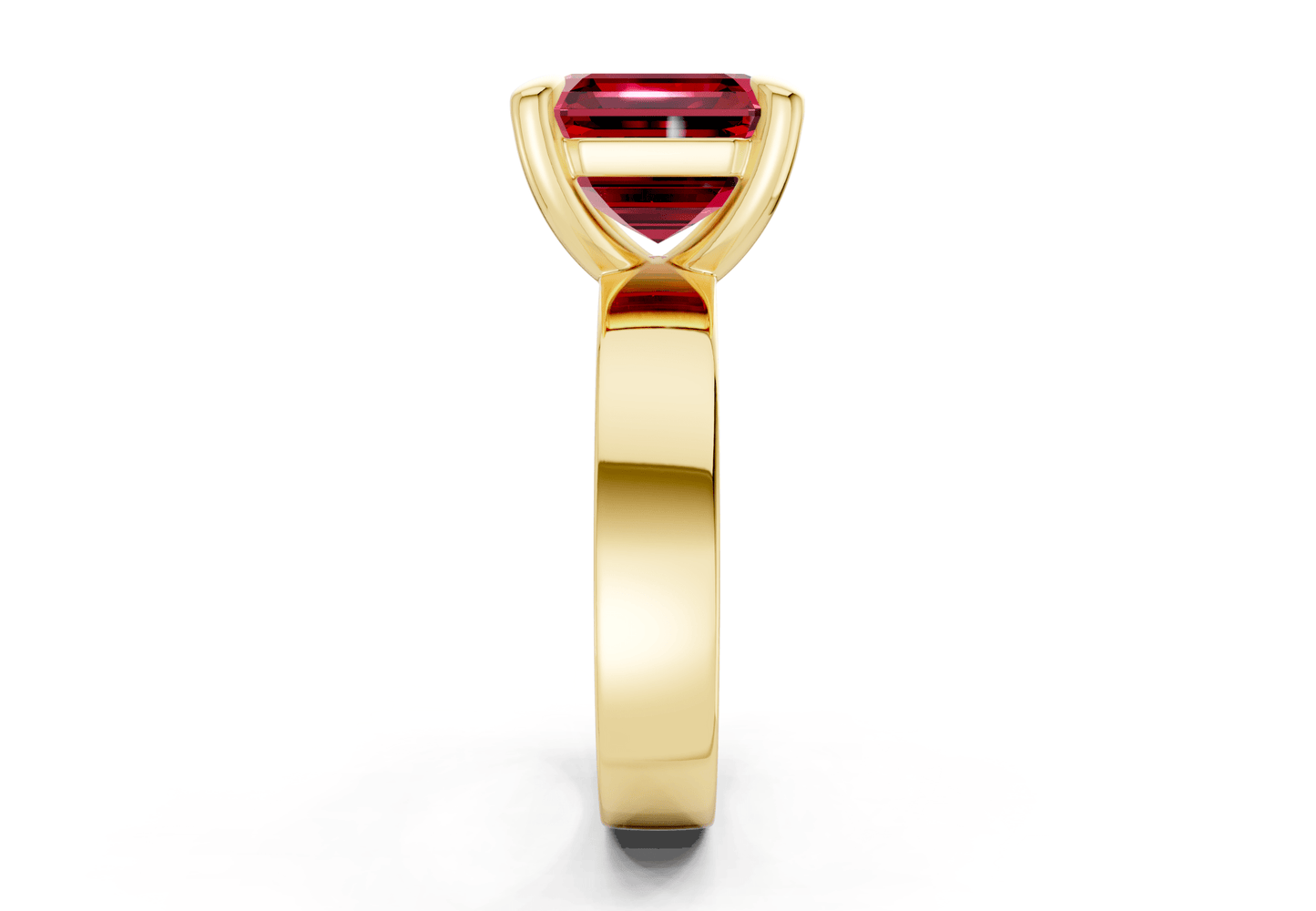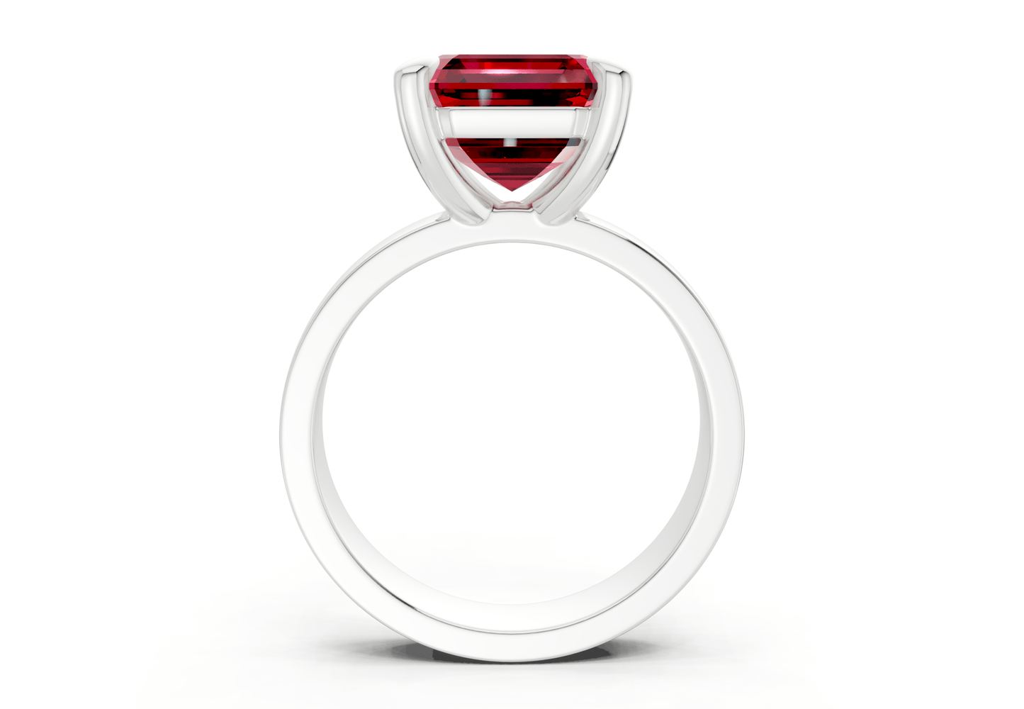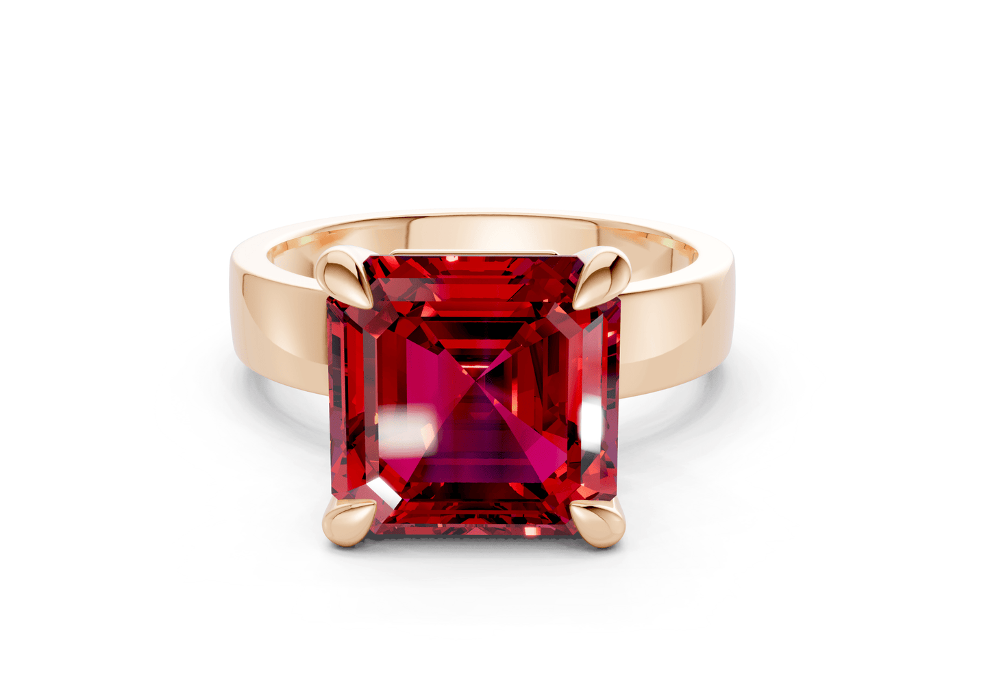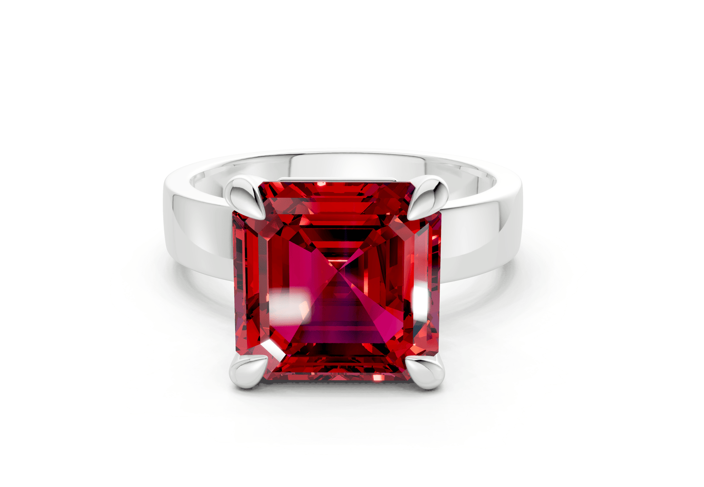 The Cascade Ruby Gemstone solitaire ring features a stunning Asscher-cut Ruby Gemstone in a sleek, minimalist setting. Designed to let the diamond shine, this piece embodies modern sophistication with timeless appeal. Perfect for those who appreciate refined simplicity, with the option for custom engraving to make it uniquely yours.