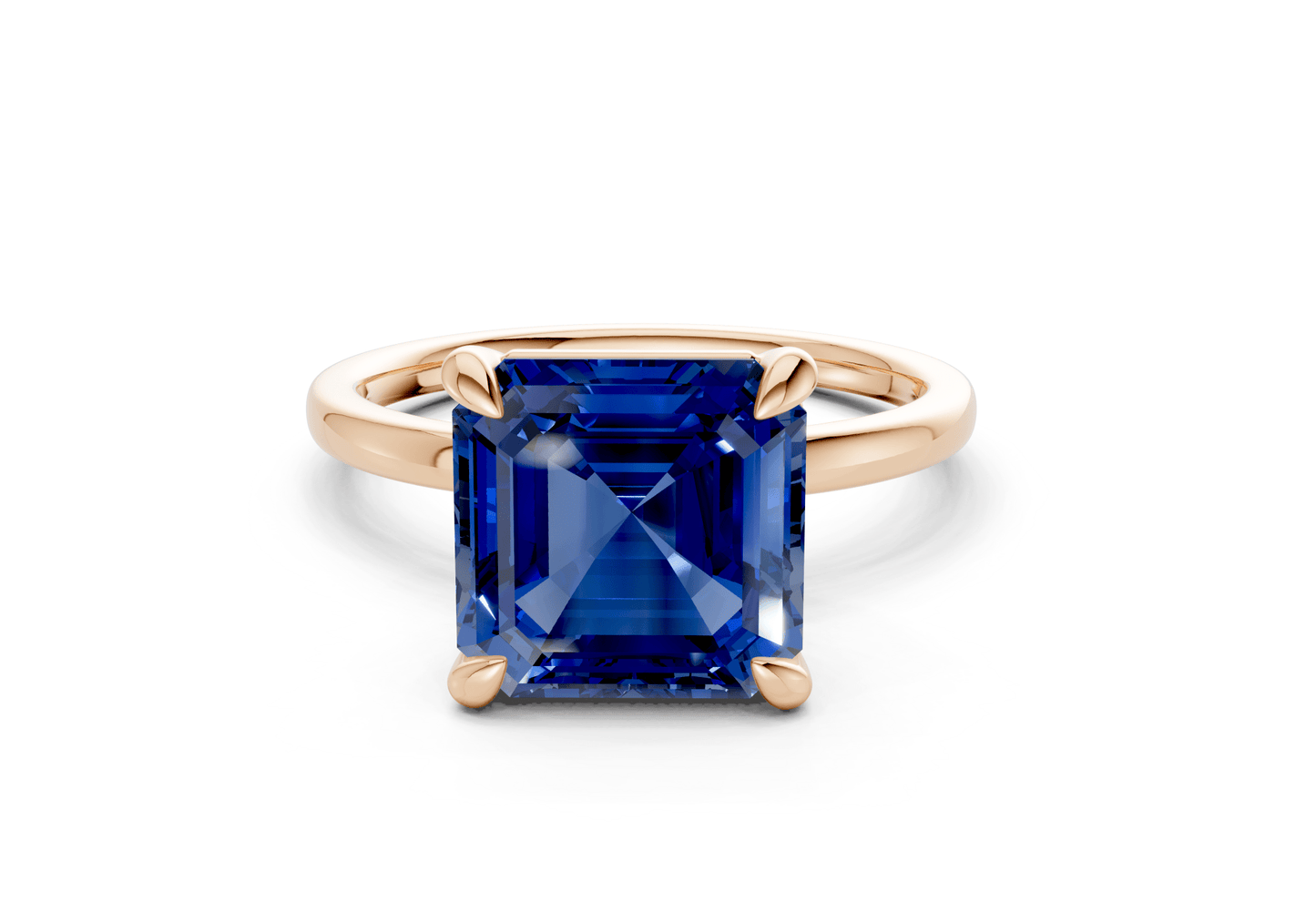 The Clementine Sapphire Gemstone solitaire ring features a stunning Asscher-cut Sapphire Gemstone in a sleek, minimalist setting. Designed to let the diamond shine, this piece embodies modern sophistication with timeless appeal. Perfect for those who appreciate refined simplicity, with the option for custom engraving to make it uniquely yours.