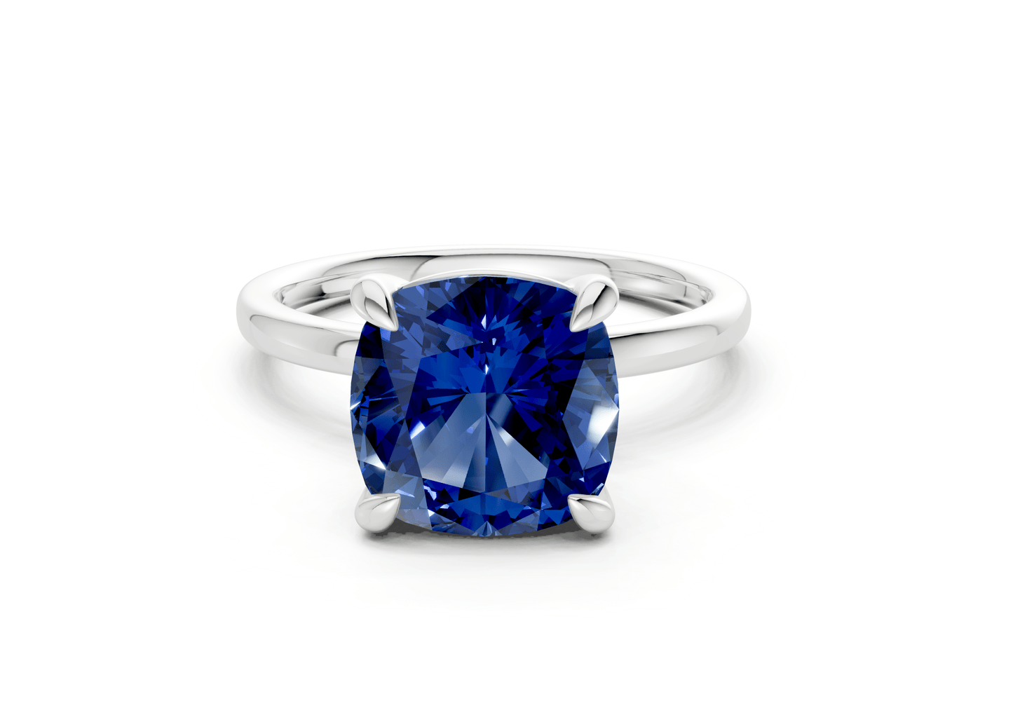 The Clementine Sapphire Gemstone solitaire ring features a stunning Cushion Squareuare-cut Sapphire Gemstone in a sleek, minimalist setting. Designed to let the diamond shine, this piece embodies modern sophistication with timeless appeal. Perfect for those who appreciate refined simplicity, with the option for custom engraving to make it uniquely yours.