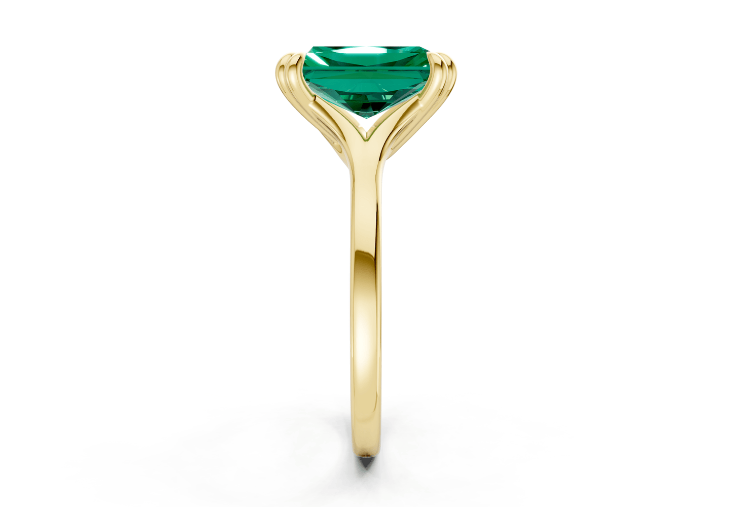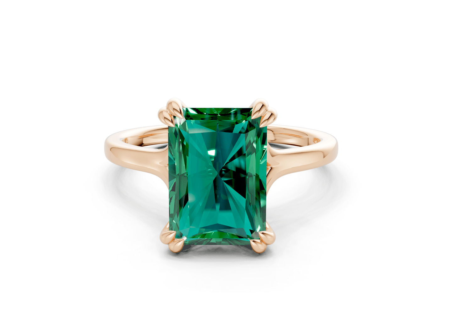 The Dahlia Emerald Gemstone solitaire ring features a stunning Radiant-cut Emerald Gemstone in a sleek, minimalist setting. Designed to let the diamond shine, this piece embodies modern sophistication with timeless appeal. Perfect for those who appreciate refined simplicity, with the option for custom engraving to make it uniquely yours.