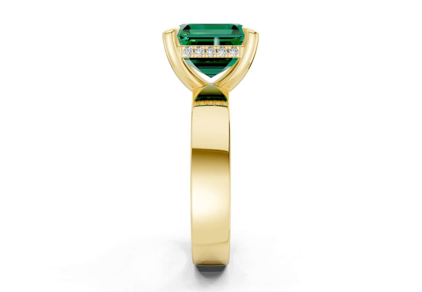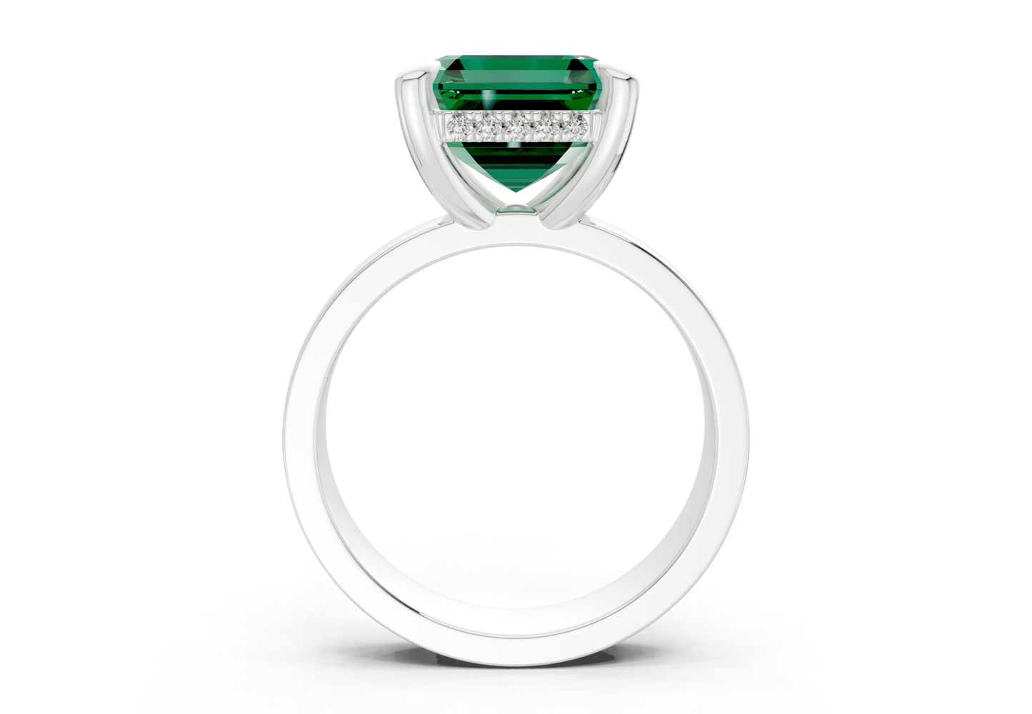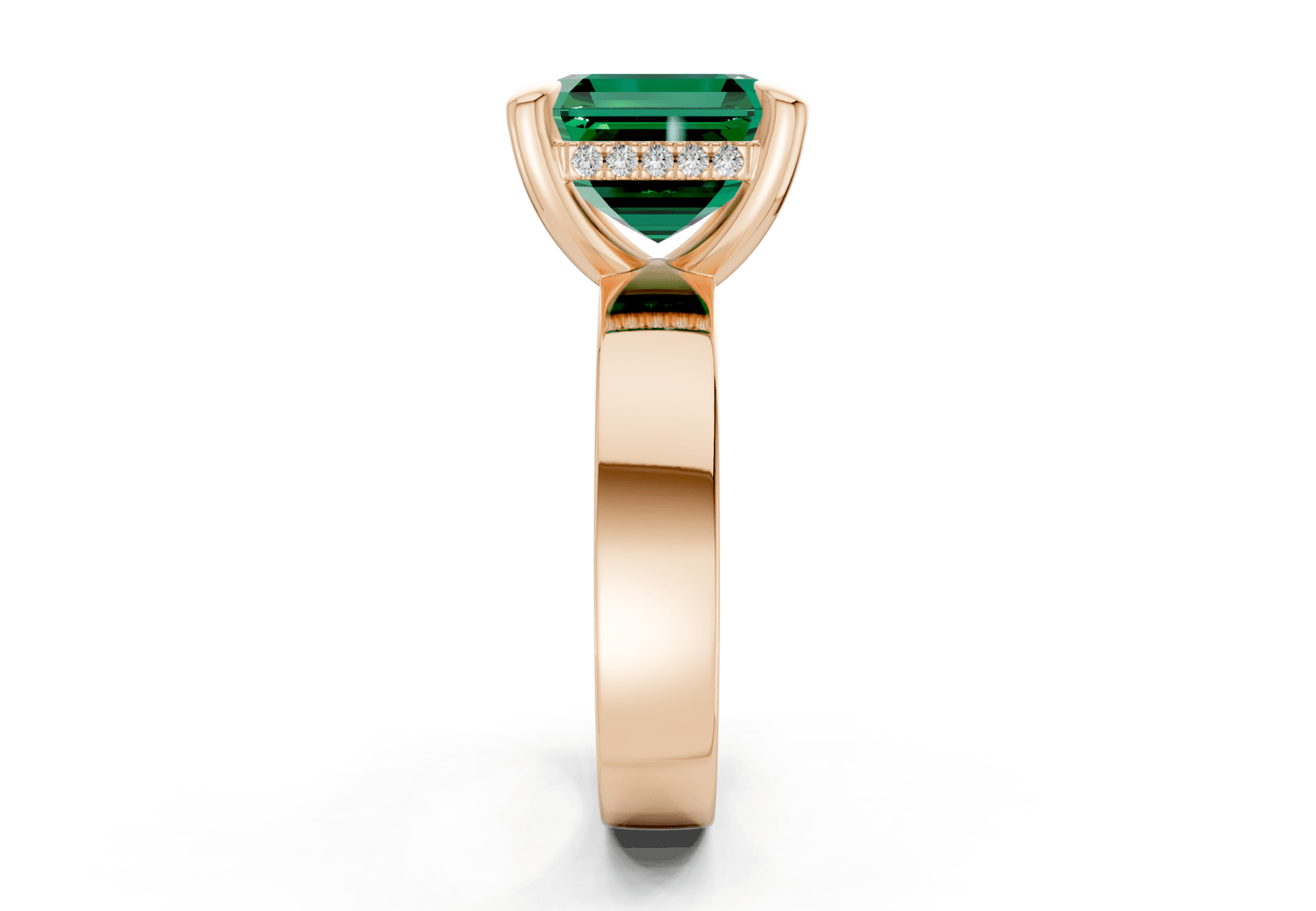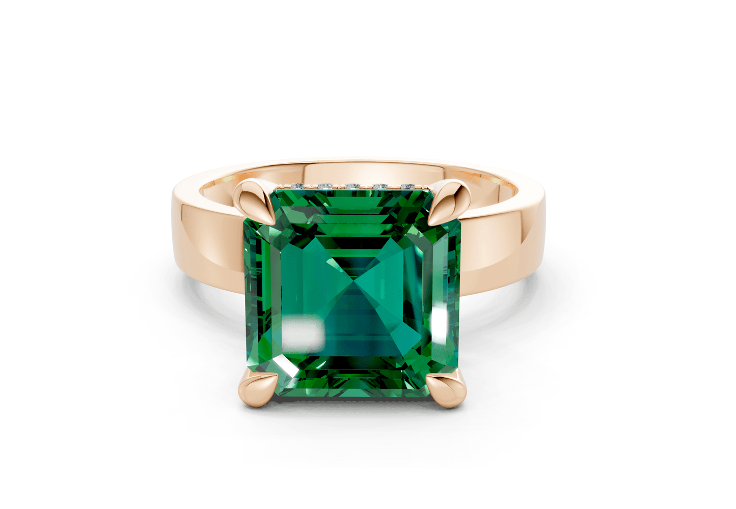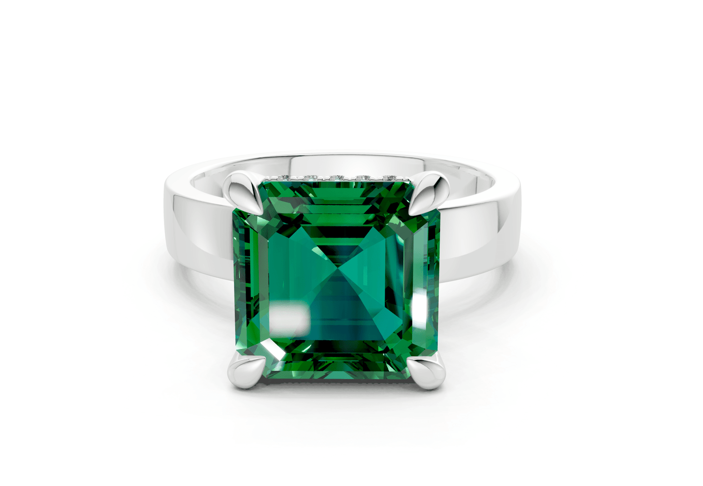 The Echo Emerald Gemstone solitaire ring features a stunning Asscher-cut Emerald Gemstone in a sleek, minimalist setting. Designed to let the diamond shine, this piece embodies modern sophistication with timeless appeal. Perfect for those who appreciate refined simplicity, with the option for custom engraving to make it uniquely yours.