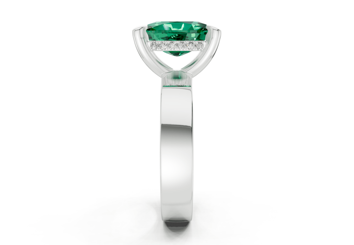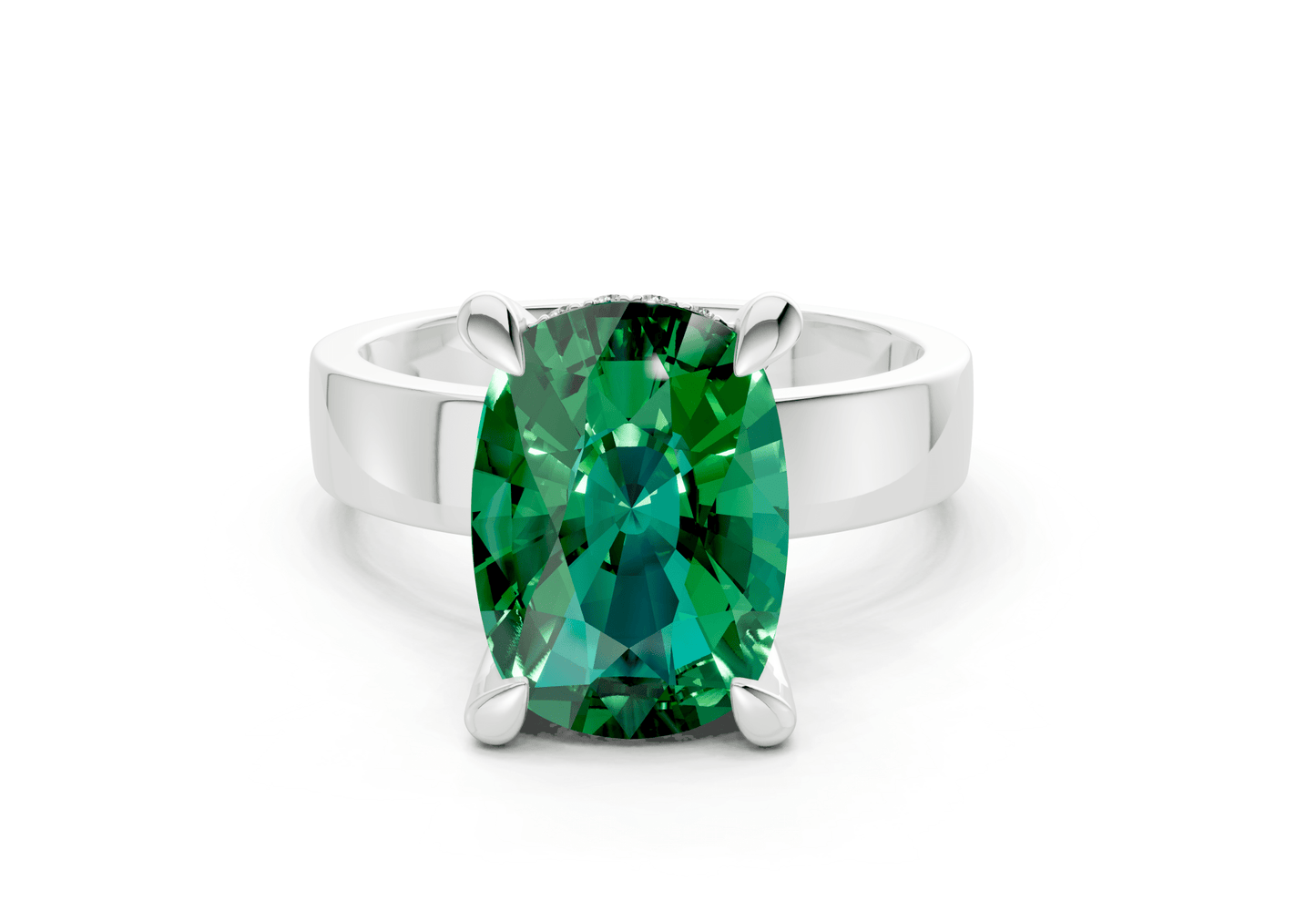 The Echo Emerald Gemstone solitaire ring features a stunning Elongated Cushion-cut Emerald Gemstone in a sleek, minimalist setting. Designed to let the diamond shine, this piece embodies modern sophistication with timeless appeal. Perfect for those who appreciate refined simplicity, with the option for custom engraving to make it uniquely yours.