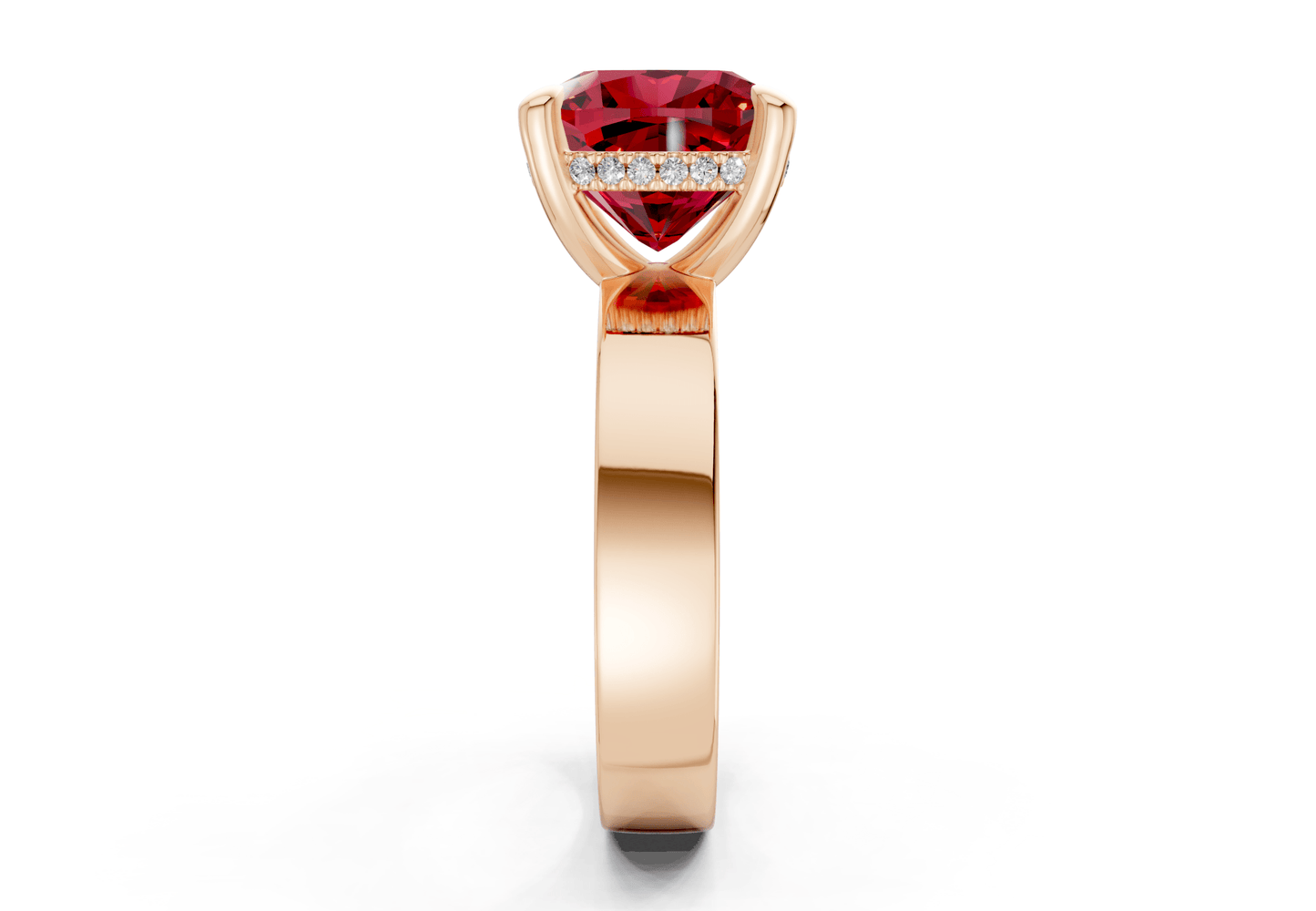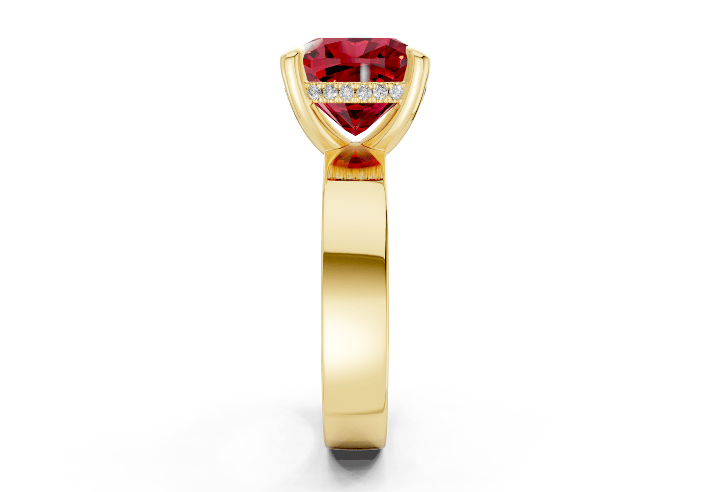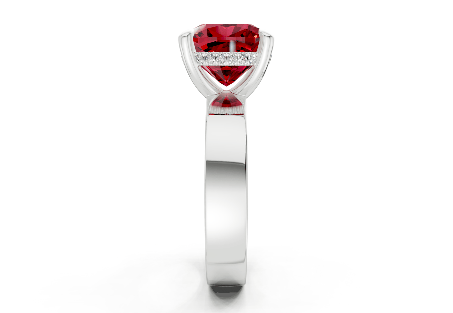 The Echo Ruby Gemstone solitaire ring features a stunning Cushion Squareuare-cut Ruby Gemstone in a sleek, minimalist setting. Designed to let the diamond shine, this piece embodies modern sophistication with timeless appeal. Perfect for those who appreciate refined simplicity, with the option for custom engraving to make it uniquely yours.