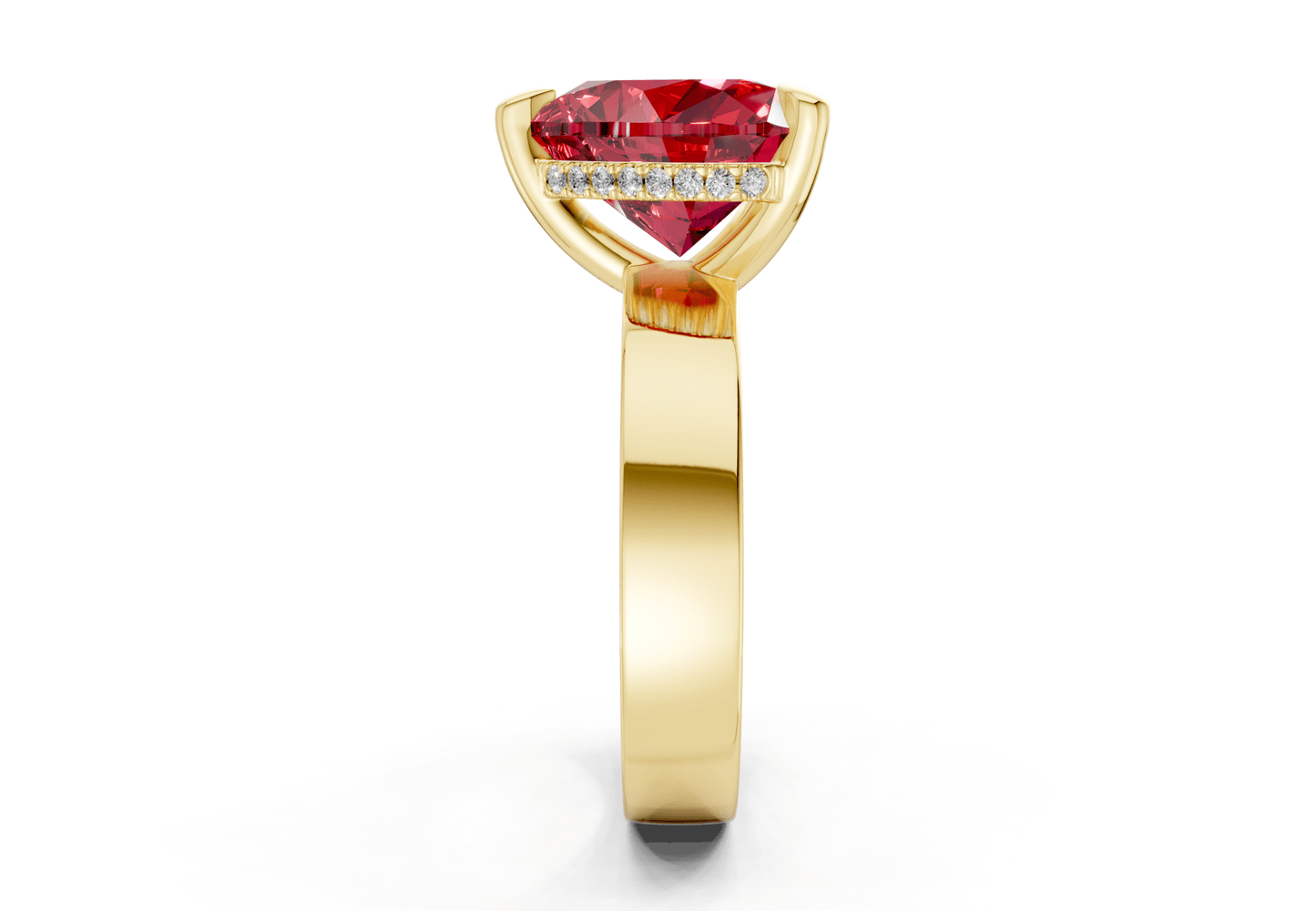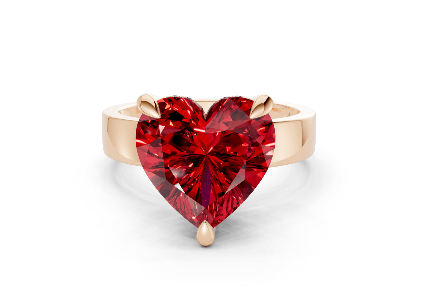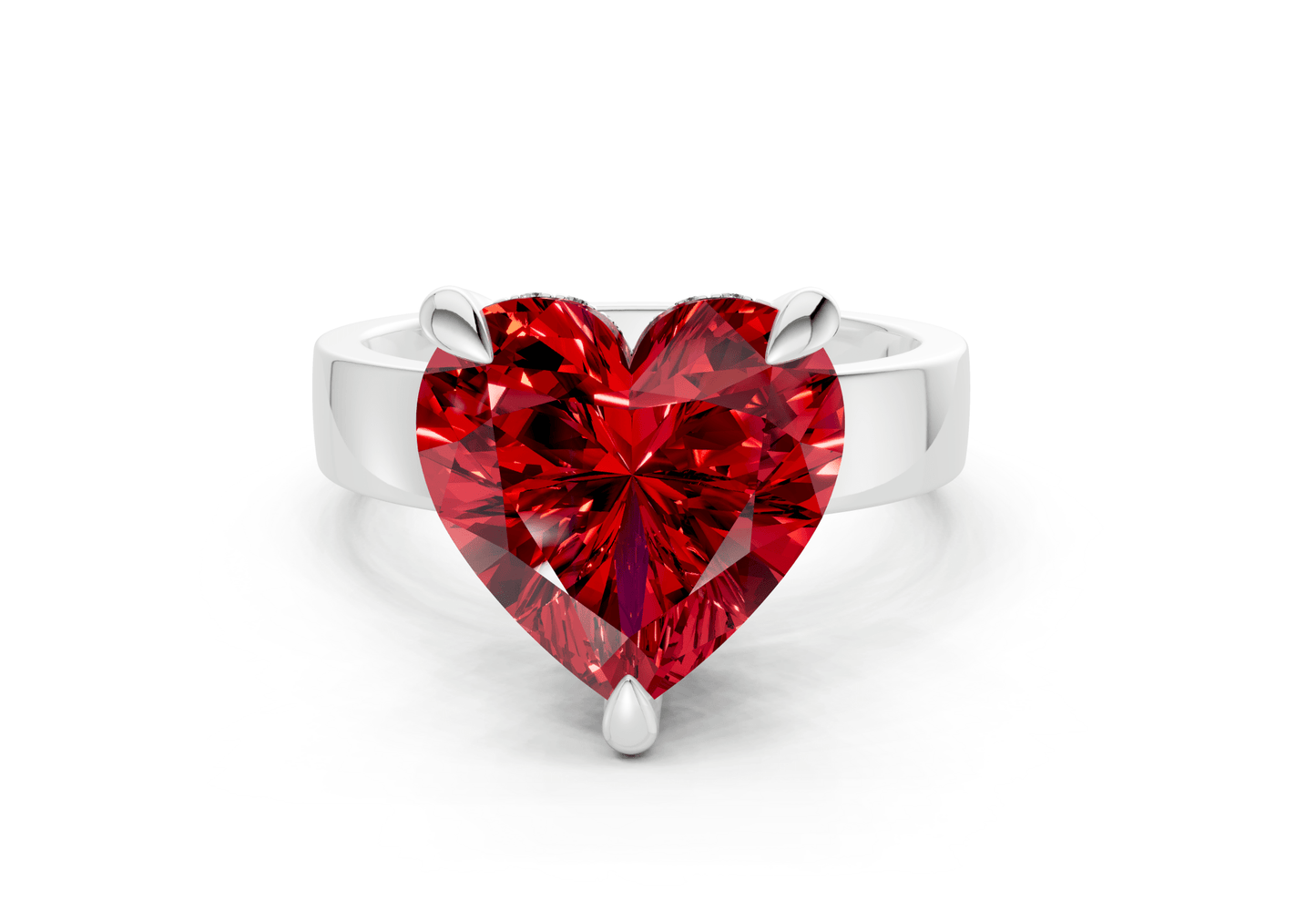 The Echo Ruby Gemstone solitaire ring features a stunning Heart-cut Ruby Gemstone in a sleek, minimalist setting. Designed to let the diamond shine, this piece embodies modern sophistication with timeless appeal. Perfect for those who appreciate refined simplicity, with the option for custom engraving to make it uniquely yours.