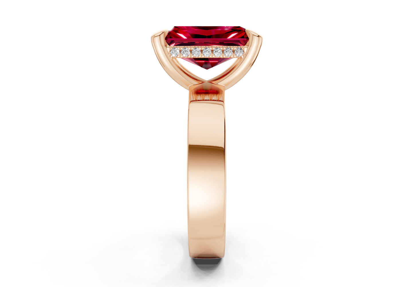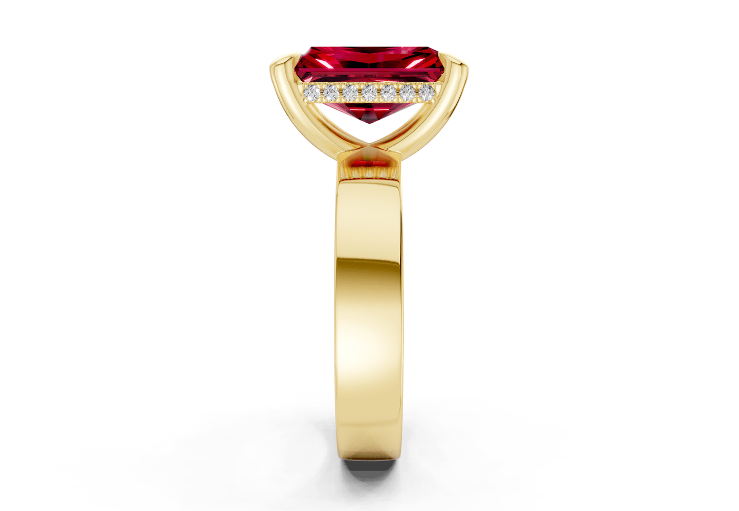 The Echo Ruby Gemstone solitaire ring features a stunning Radiant-cut Ruby Gemstone in a sleek, minimalist setting. Designed to let the diamond shine, this piece embodies modern sophistication with timeless appeal. Perfect for those who appreciate refined simplicity, with the option for custom engraving to make it uniquely yours.