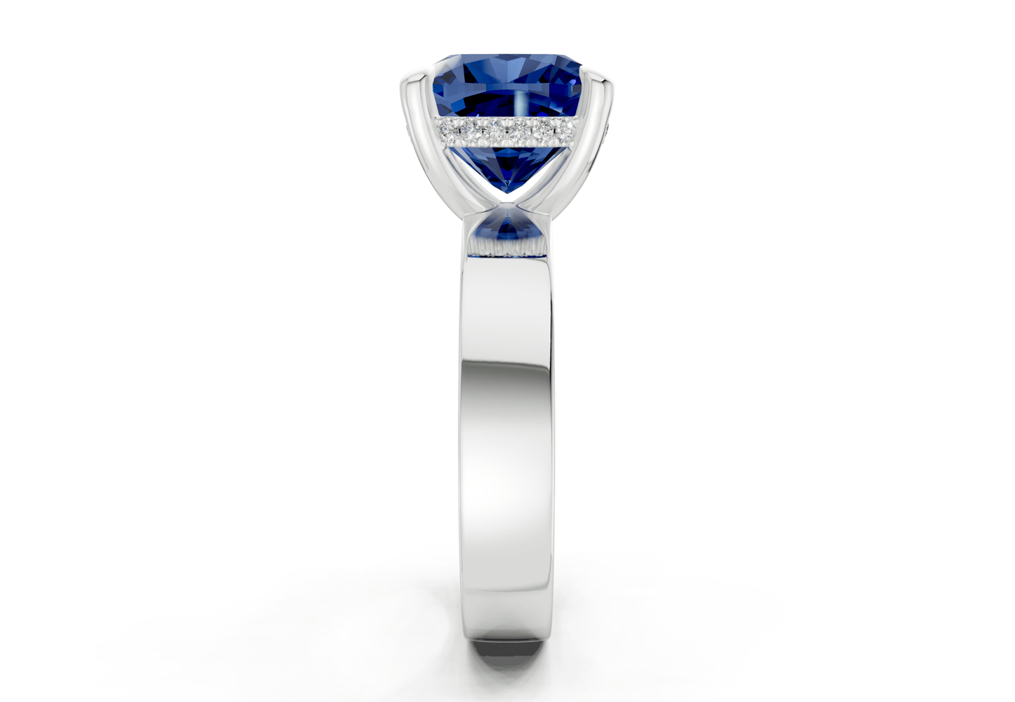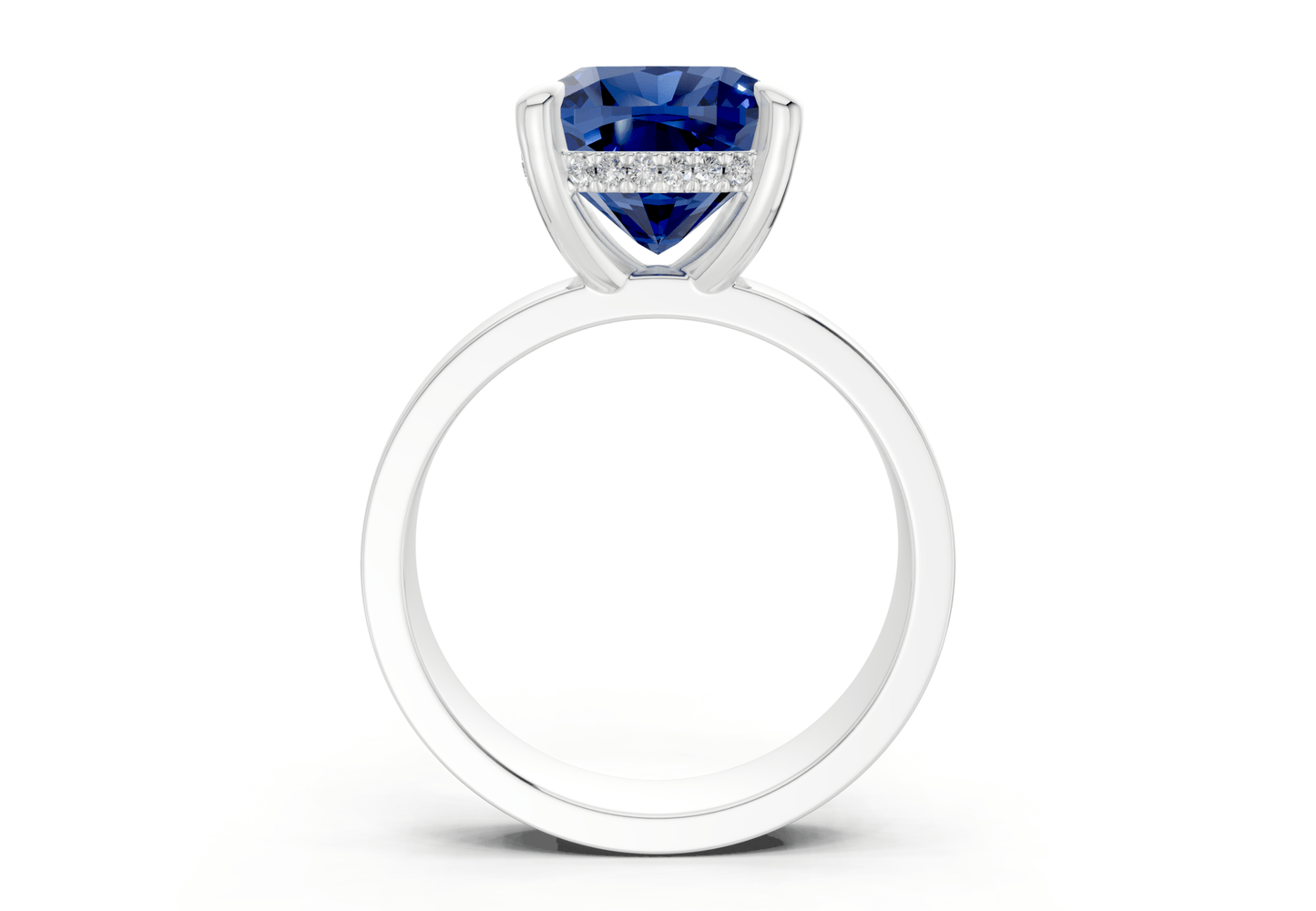 The Echo Sapphire Gemstone solitaire ring features a stunning Cushion Squareuare-cut Sapphire Gemstone in a sleek, minimalist setting. Designed to let the diamond shine, this piece embodies modern sophistication with timeless appeal. Perfect for those who appreciate refined simplicity, with the option for custom engraving to make it uniquely yours.