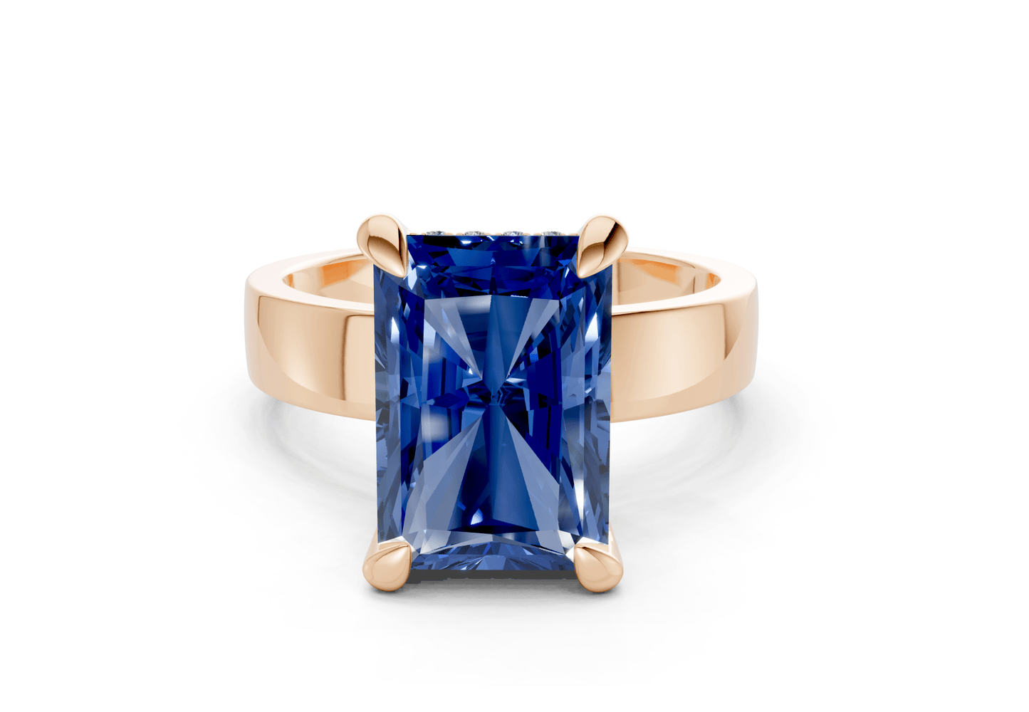 The Echo Sapphire Gemstone solitaire ring features a stunning Radiant-cut Sapphire Gemstone in a sleek, minimalist setting. Designed to let the diamond shine, this piece embodies modern sophistication with timeless appeal. Perfect for those who appreciate refined simplicity, with the option for custom engraving to make it uniquely yours.