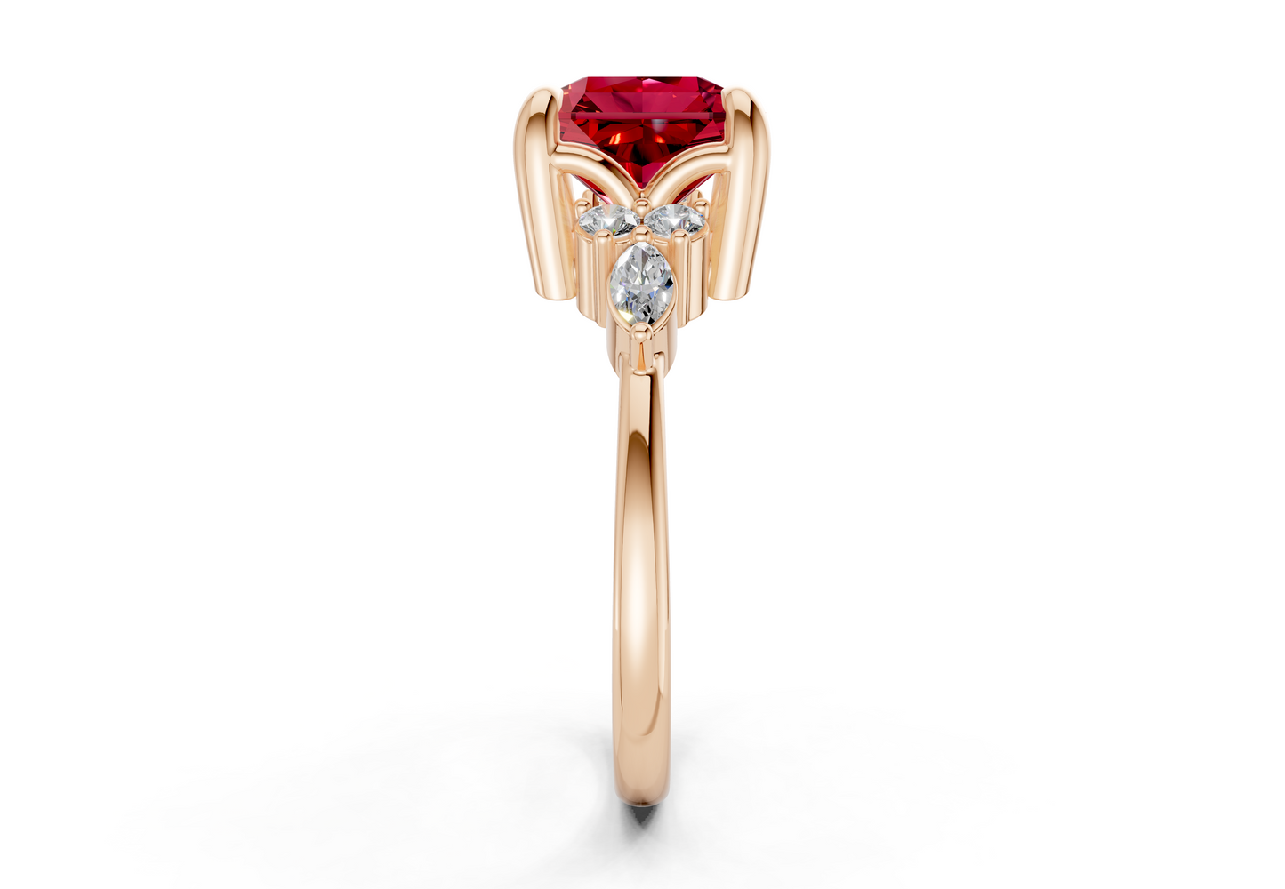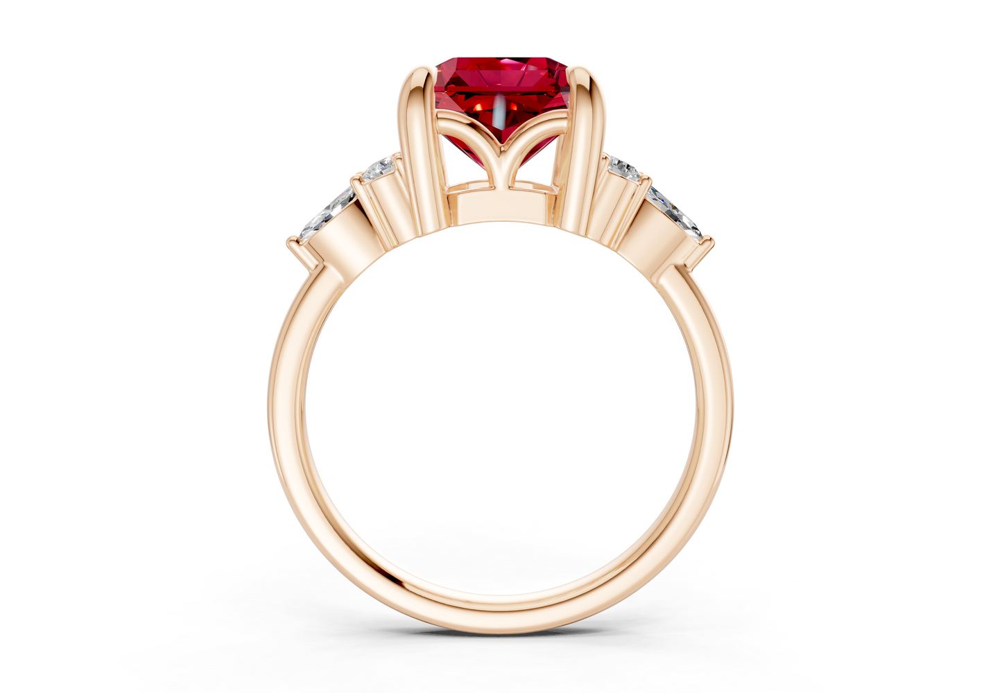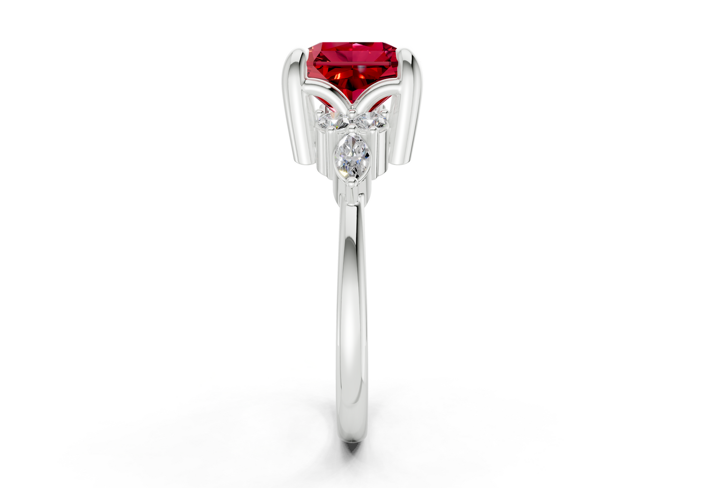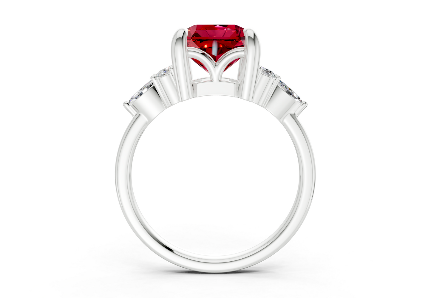 Lyra Ruby Gemstone Accent Radiant Square Cut 2mm Engagement Ring