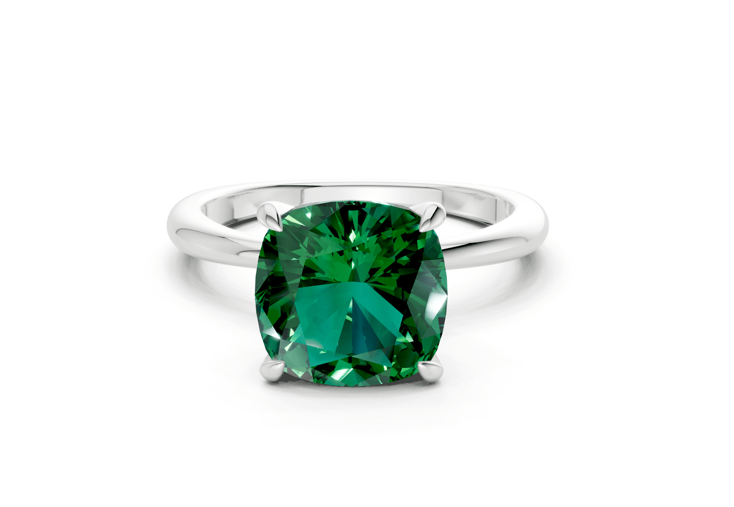 Marlowe Emerald Gemstone Solitaire Cushion Squareuare Cut 1.6mm Engagement Ring