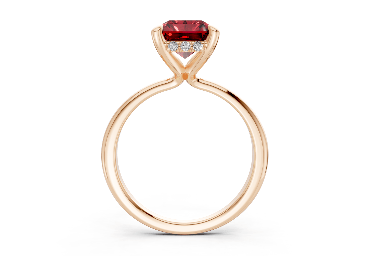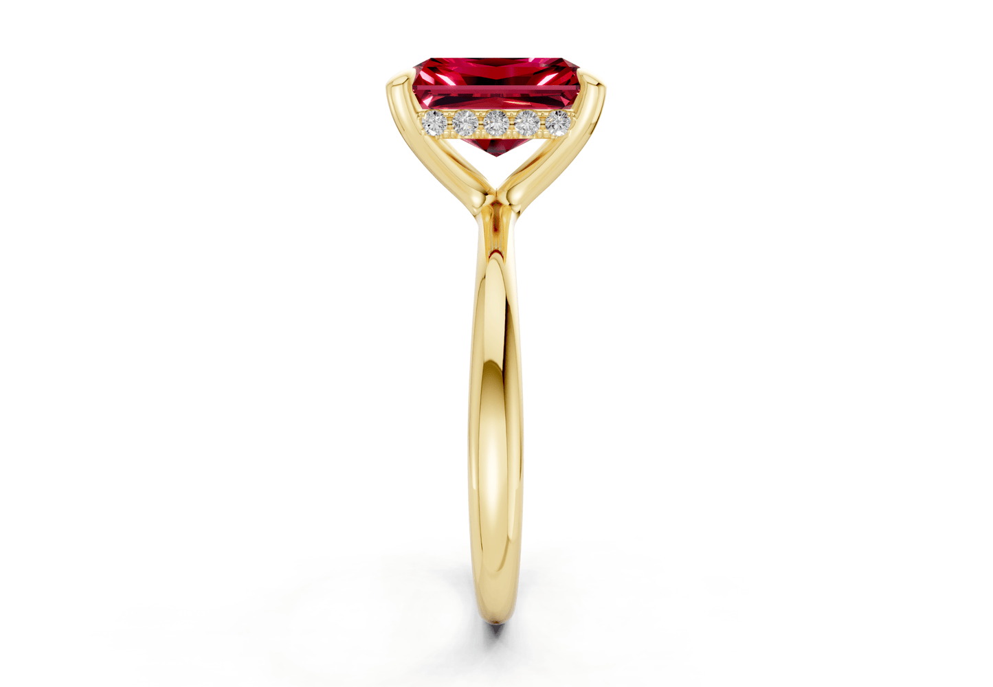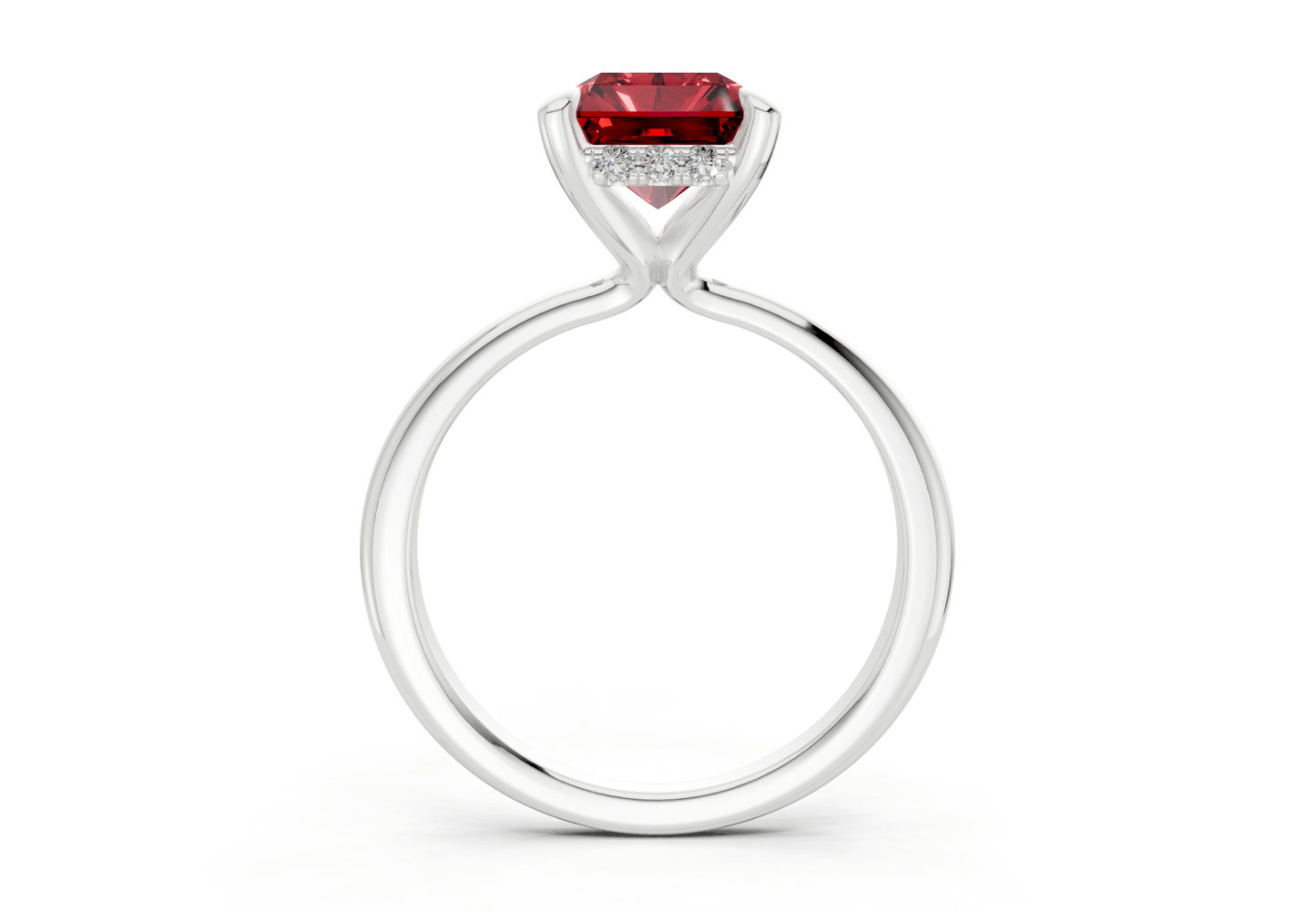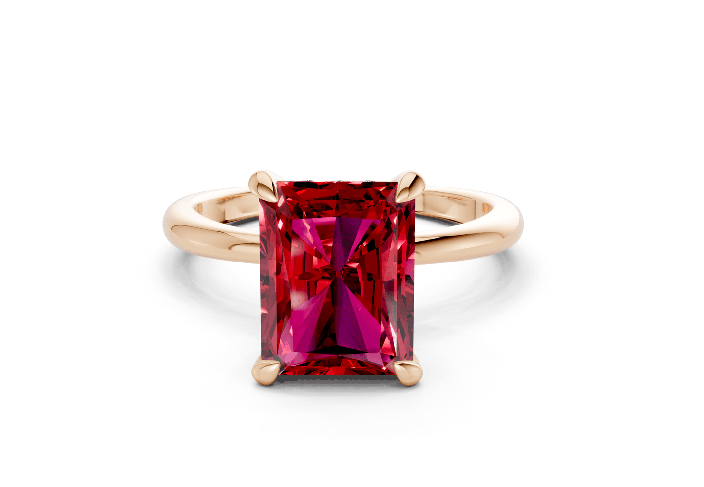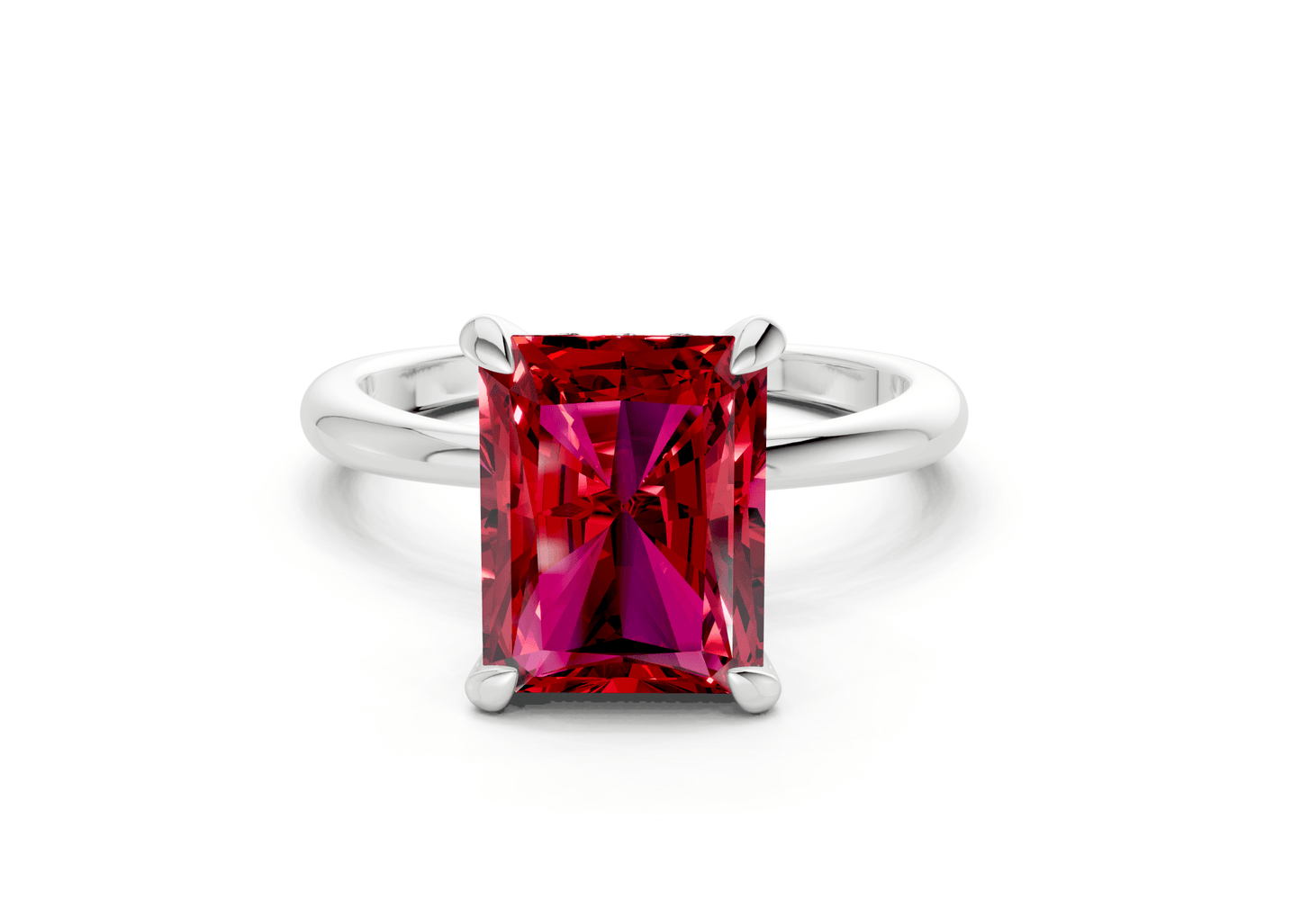 The Marlowe Ruby Gemstone solitaire ring features a stunning Radiant-cut Ruby Gemstone in a sleek, minimalist setting. Designed to let the diamond shine, this piece embodies modern sophistication with timeless appeal. Perfect for those who appreciate refined simplicity, with the option for custom engraving to make it uniquely yours.