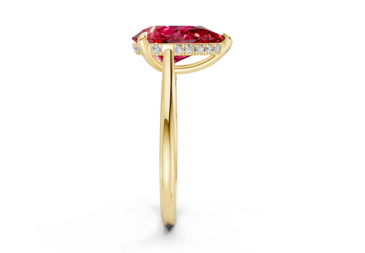 The Piper Ruby Gemstone solitaire ring features a stunning Pear-cut Ruby Gemstone in a sleek, minimalist setting. Designed to let the diamond shine, this piece embodies modern sophistication with timeless appeal. Perfect for those who appreciate refined simplicity, with the option for custom engraving to make it uniquely yours.