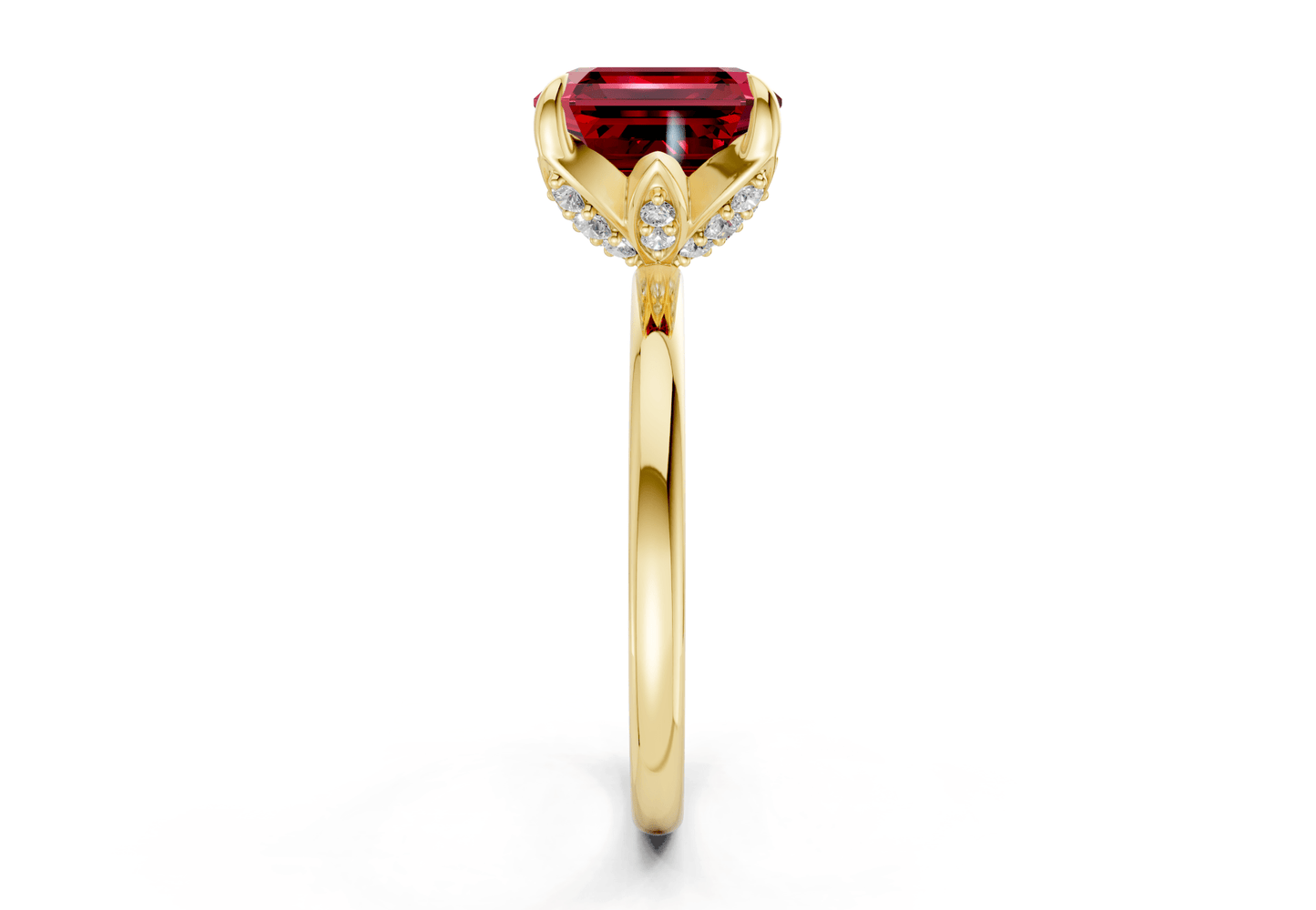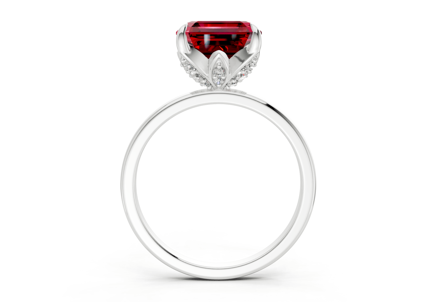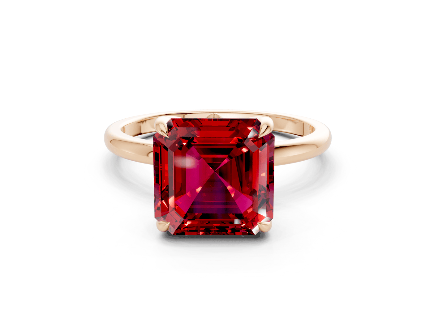 The Skye Ruby Gemstone solitaire ring features a stunning Asscher-cut Ruby Gemstone in a sleek, minimalist setting. Designed to let the diamond shine, this piece embodies modern sophistication with timeless appeal. Perfect for those who appreciate refined simplicity, with the option for custom engraving to make it uniquely yours.