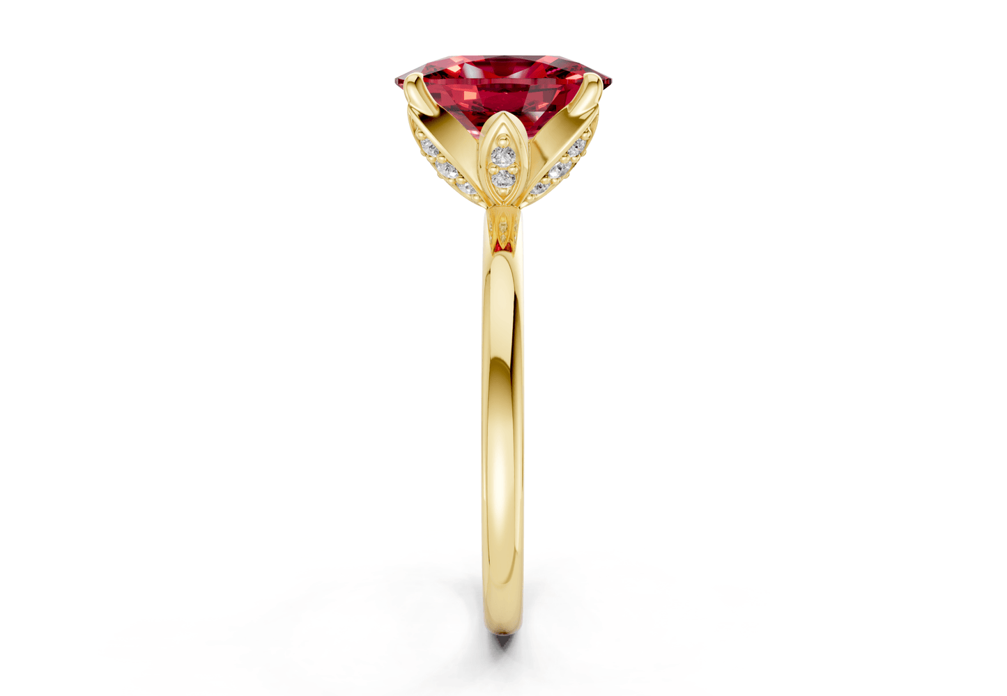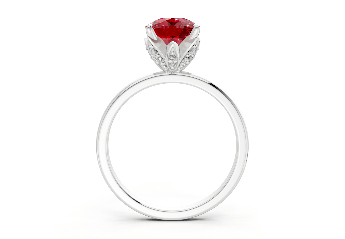 The Skye Ruby Gemstone solitaire ring features a stunning Elongated Cushion-cut Ruby Gemstone in a sleek, minimalist setting. Designed to let the diamond shine, this piece embodies modern sophistication with timeless appeal. Perfect for those who appreciate refined simplicity, with the option for custom engraving to make it uniquely yours.