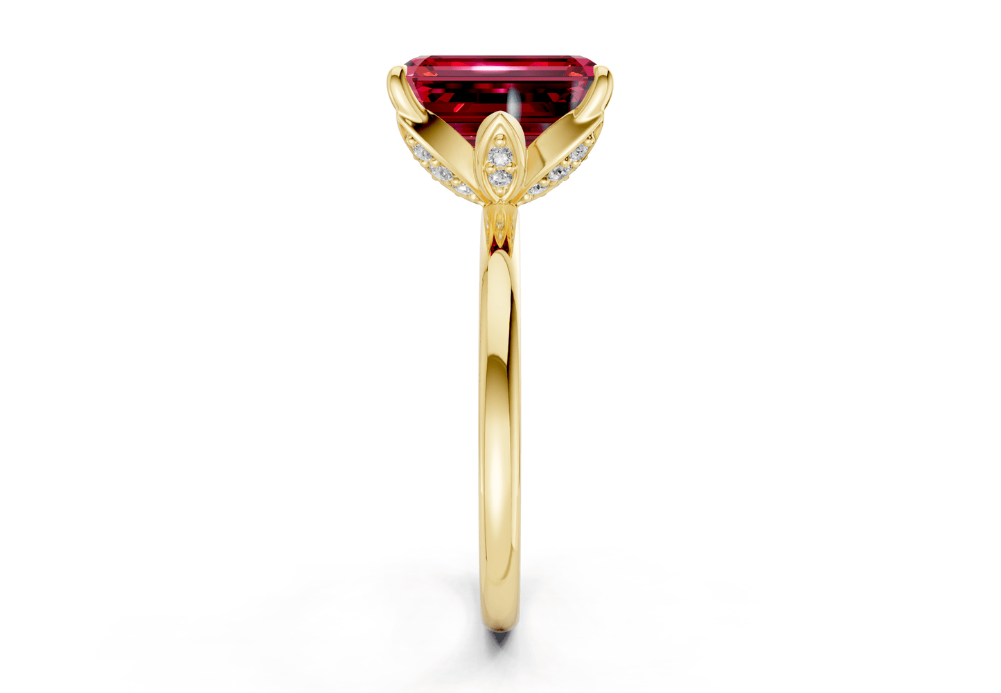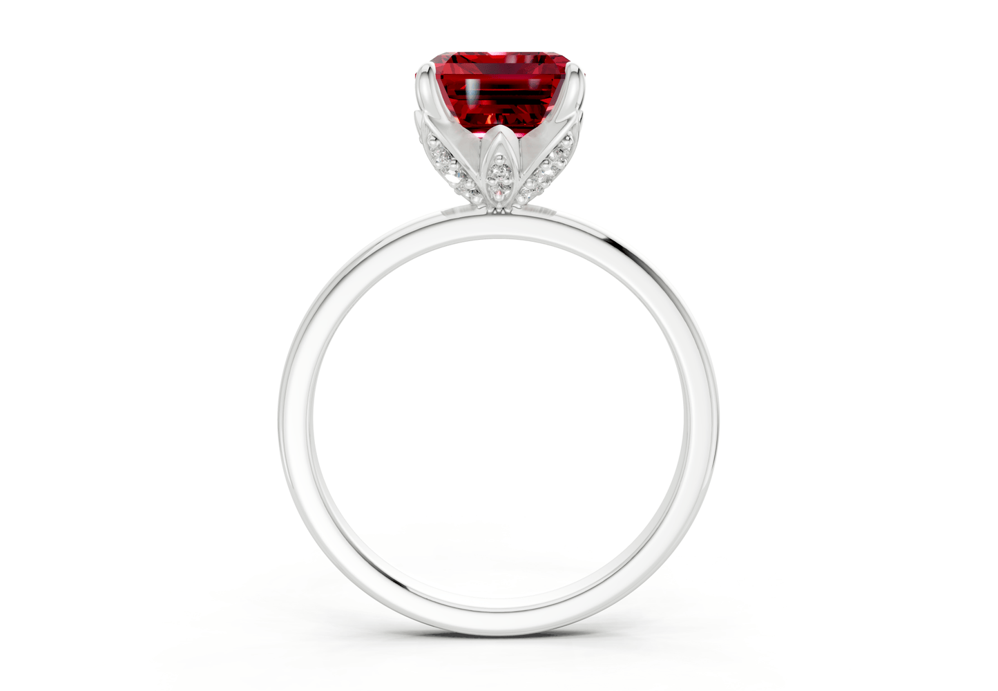 The Skye Ruby Gemstone solitaire ring features a stunning Emerald-cut Ruby Gemstone in a sleek, minimalist setting. Designed to let the diamond shine, this piece embodies modern sophistication with timeless appeal. Perfect for those who appreciate refined simplicity, with the option for custom engraving to make it uniquely yours.