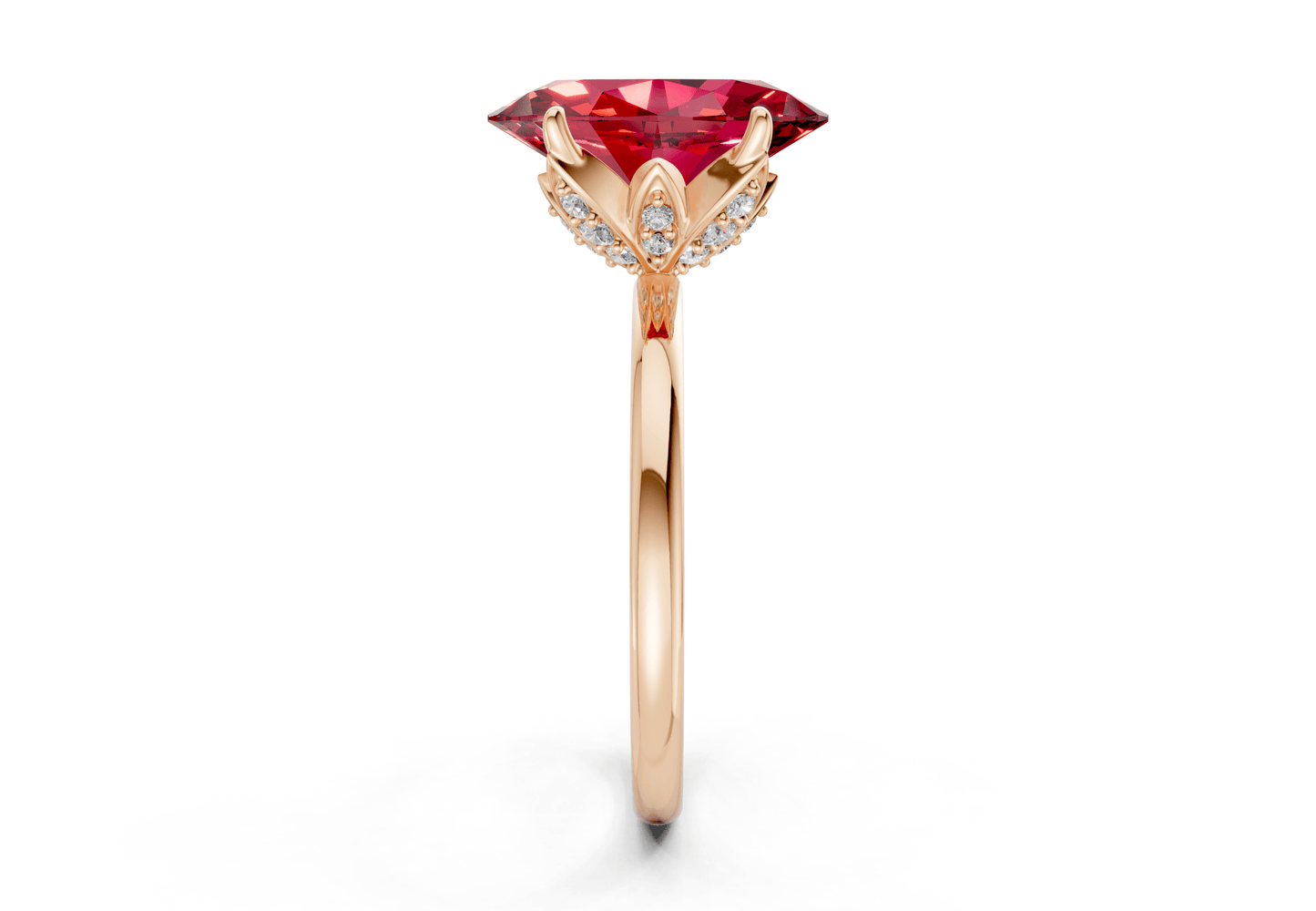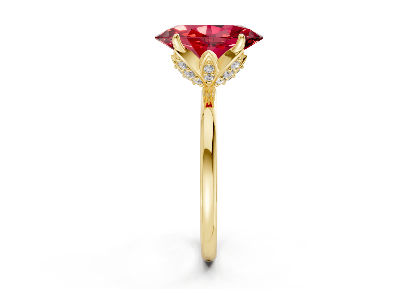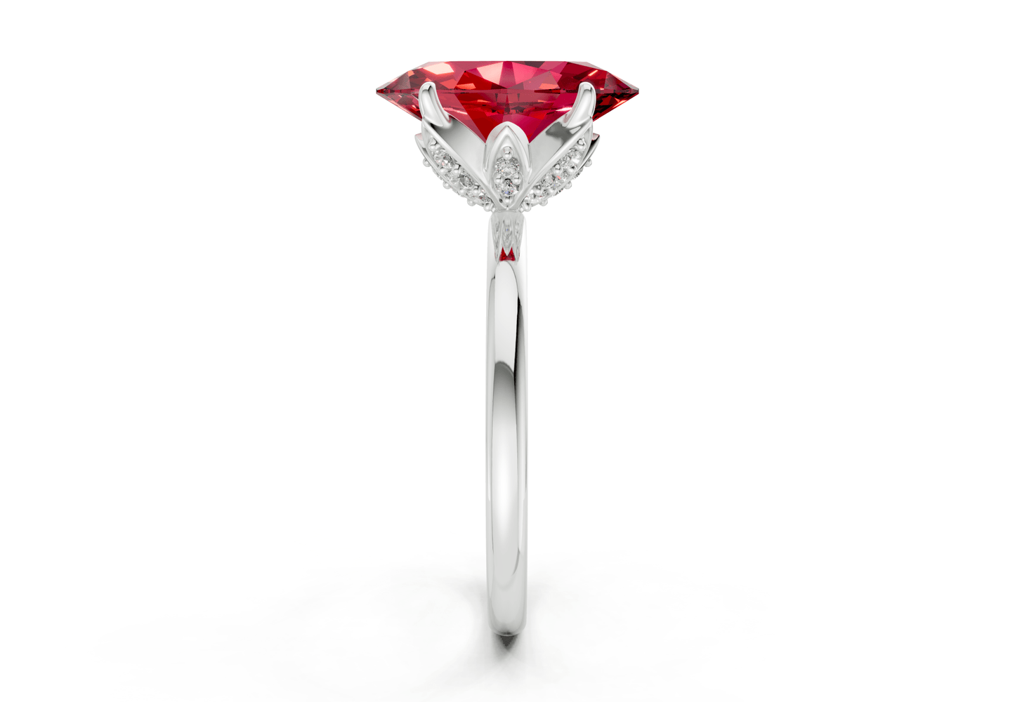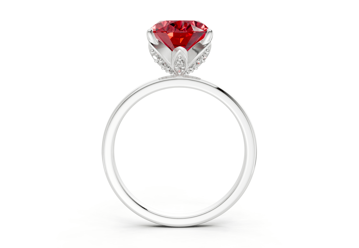 The Skye Ruby Gemstone solitaire ring features a stunning Oval-cut Ruby Gemstone in a sleek, minimalist setting. Designed to let the diamond shine, this piece embodies modern sophistication with timeless appeal. Perfect for those who appreciate refined simplicity, with the option for custom engraving to make it uniquely yours.