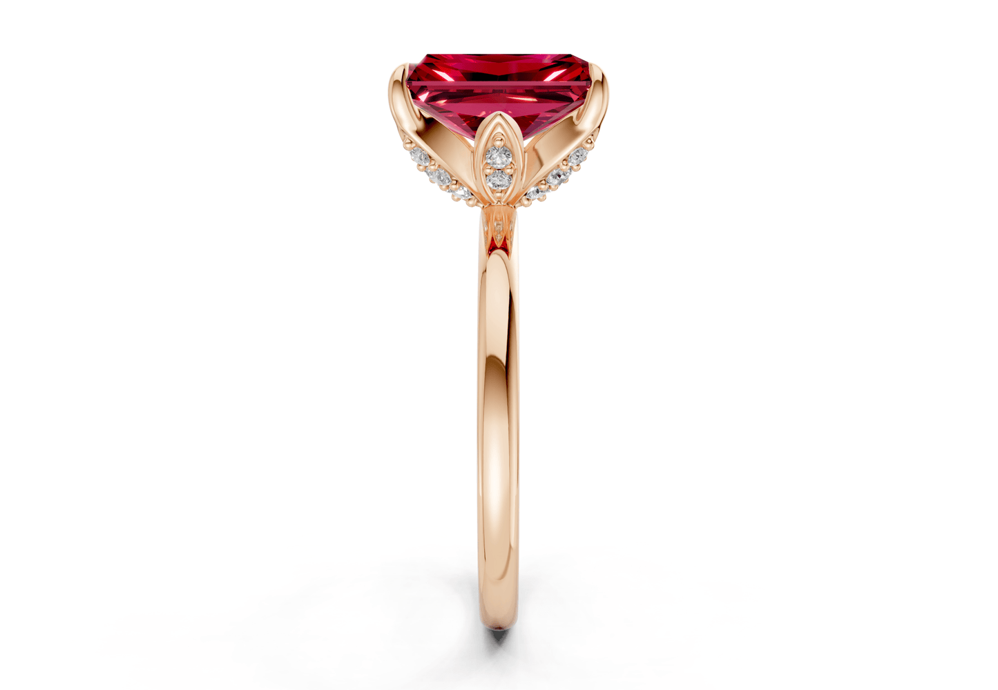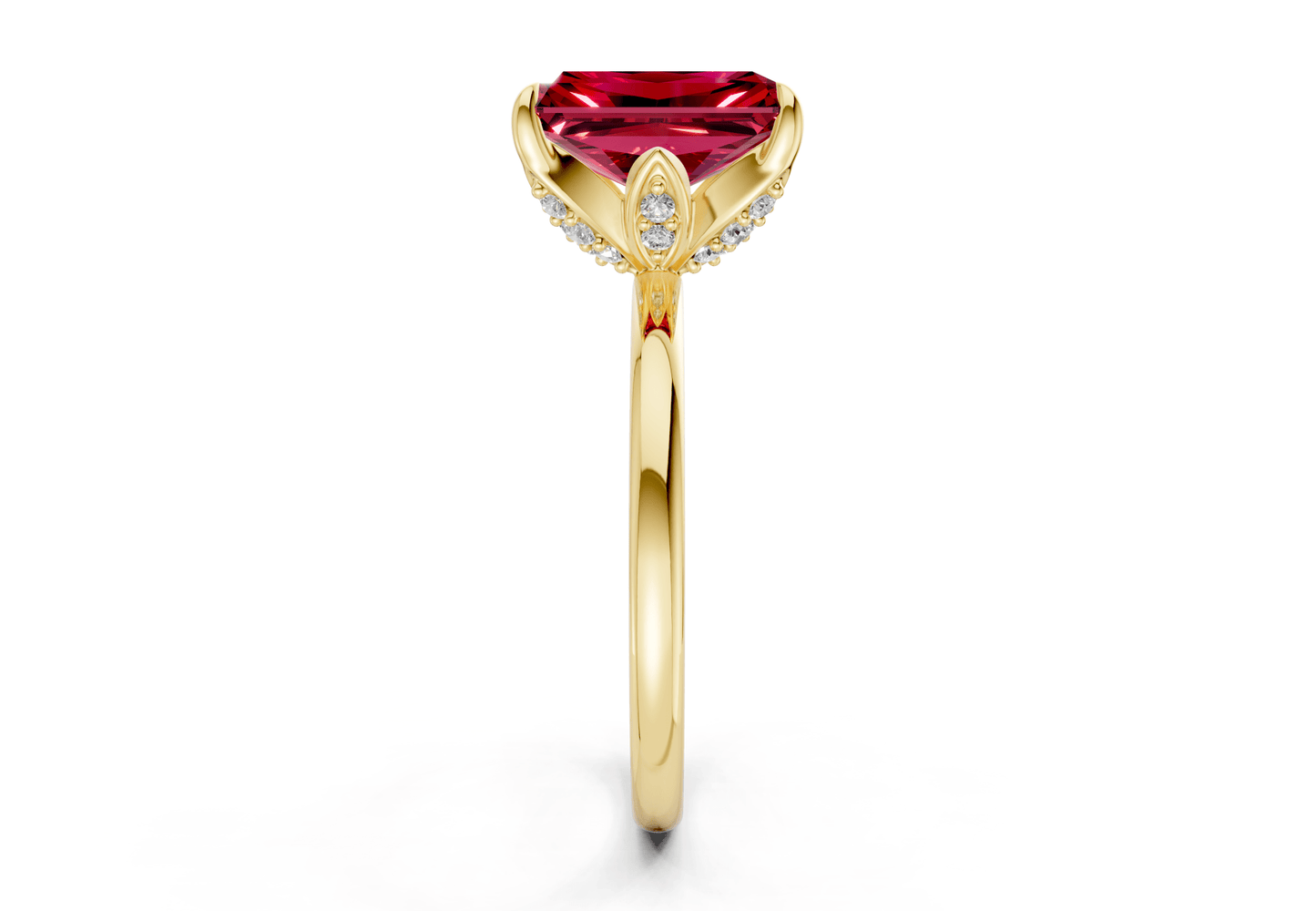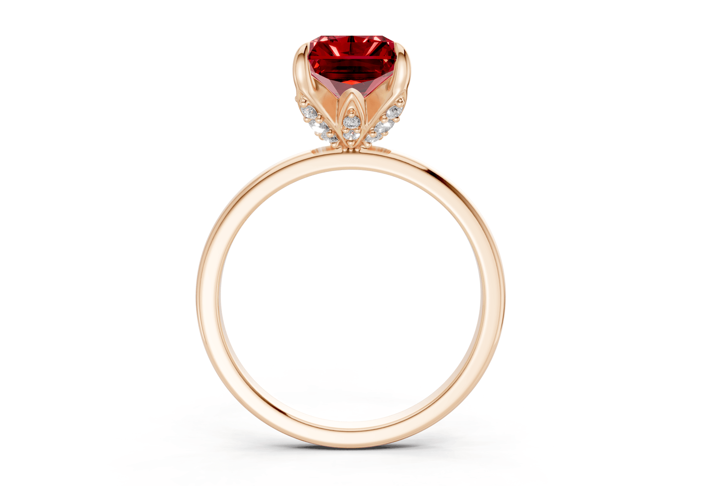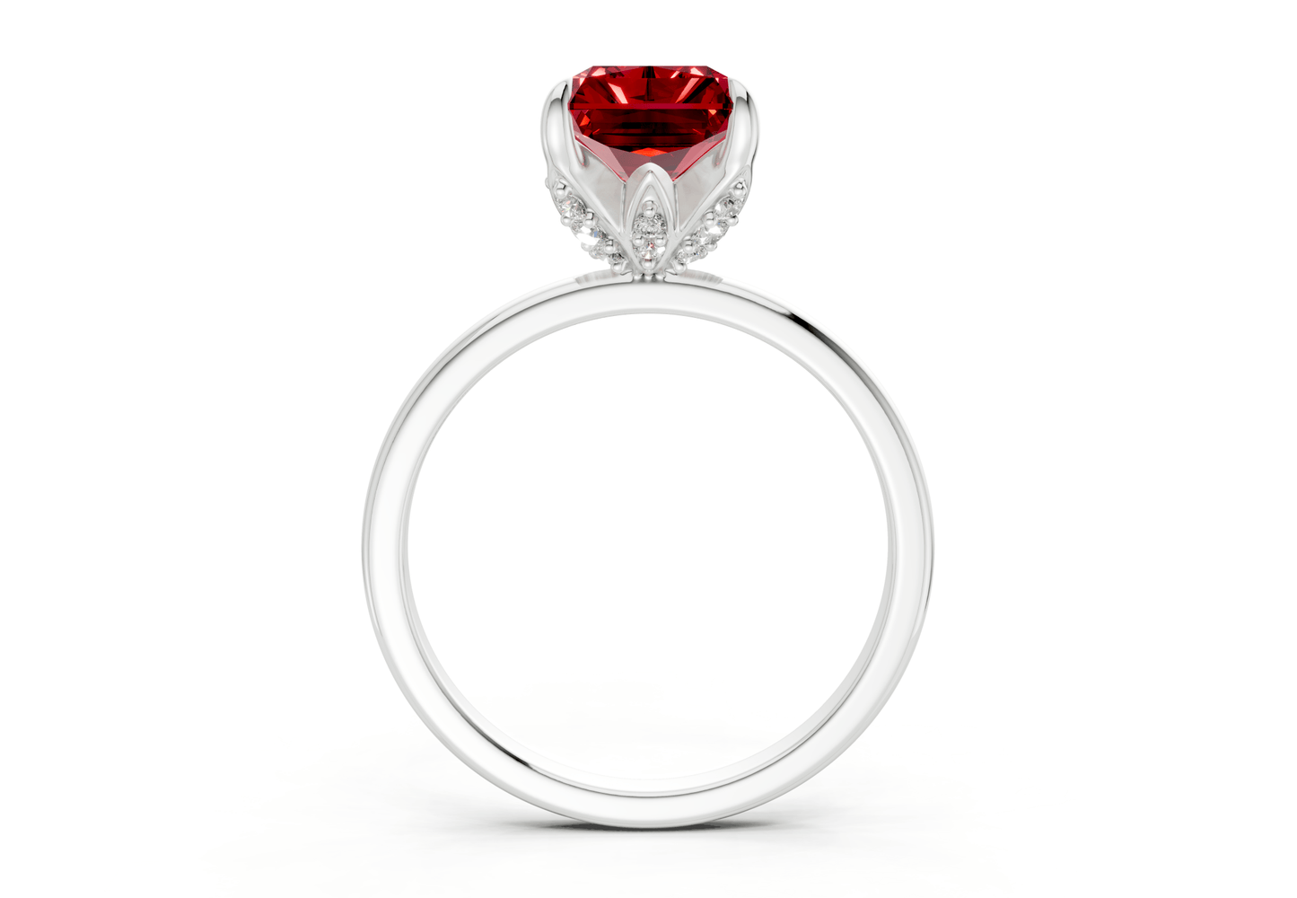 The Skye Ruby Gemstone solitaire ring features a stunning Radiant-cut Ruby Gemstone in a sleek, minimalist setting. Designed to let the diamond shine, this piece embodies modern sophistication with timeless appeal. Perfect for those who appreciate refined simplicity, with the option for custom engraving to make it uniquely yours.