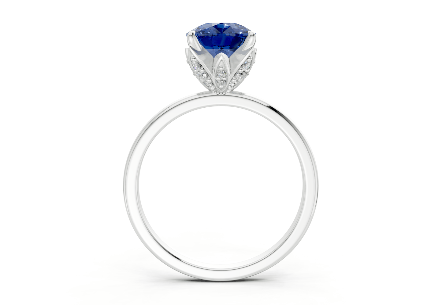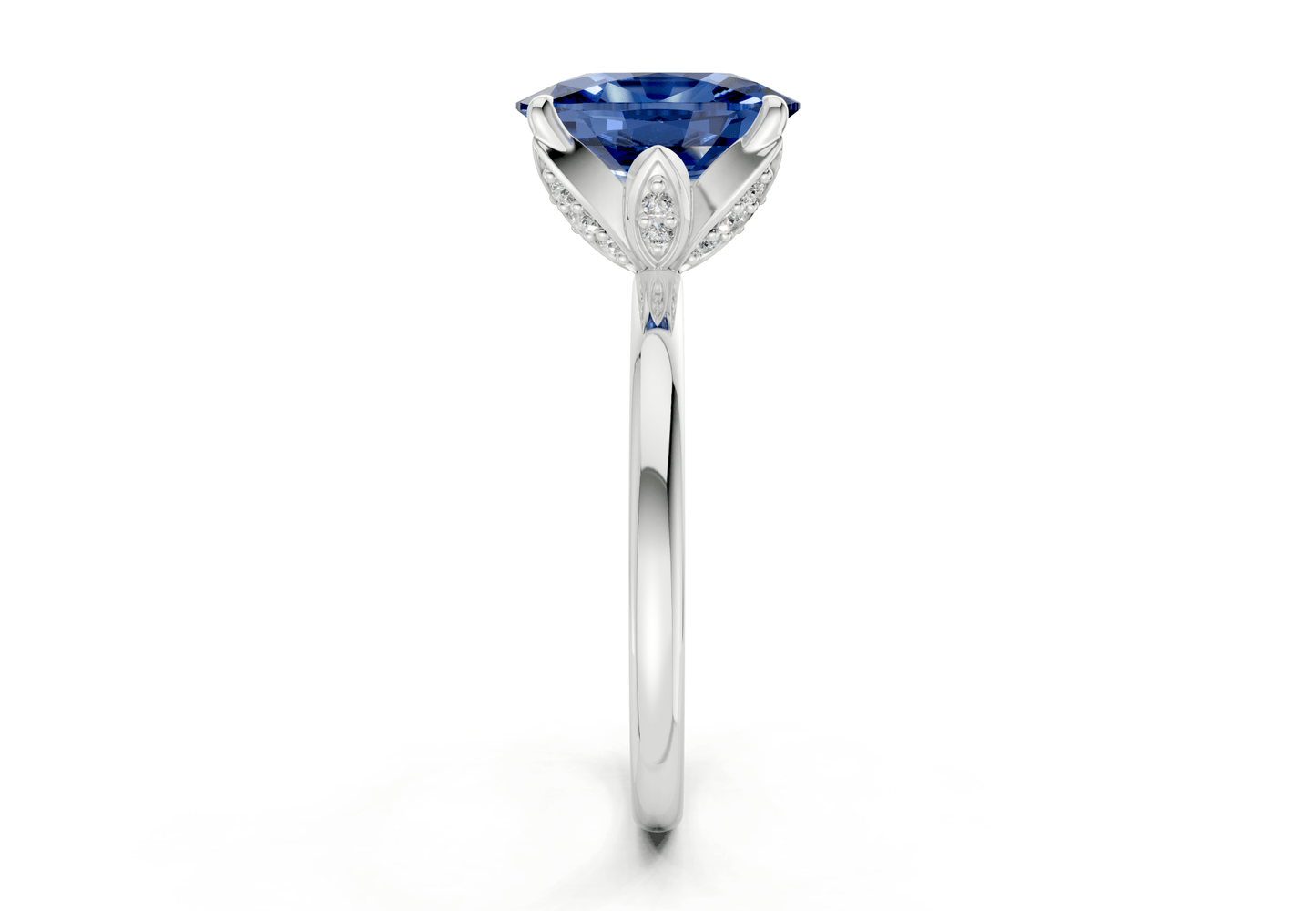 The Skye Sapphire Gemstone solitaire ring features a stunning Elongated Cushion-cut Sapphire Gemstone in a sleek, minimalist setting. Designed to let the diamond shine, this piece embodies modern sophistication with timeless appeal. Perfect for those who appreciate refined simplicity, with the option for custom engraving to make it uniquely yours.