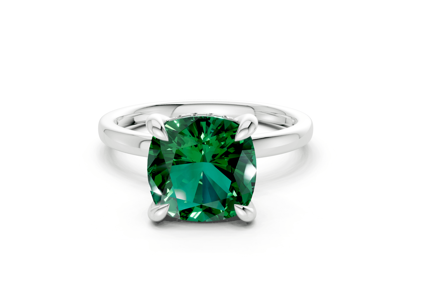The Solstice Emerald Gemstone solitaire ring features a stunning Cushion Squareuare-cut Emerald Gemstone in a sleek, minimalist setting. Designed to let the diamond shine, this piece embodies modern sophistication with timeless appeal. Perfect for those who appreciate refined simplicity, with the option for custom engraving to make it uniquely yours.