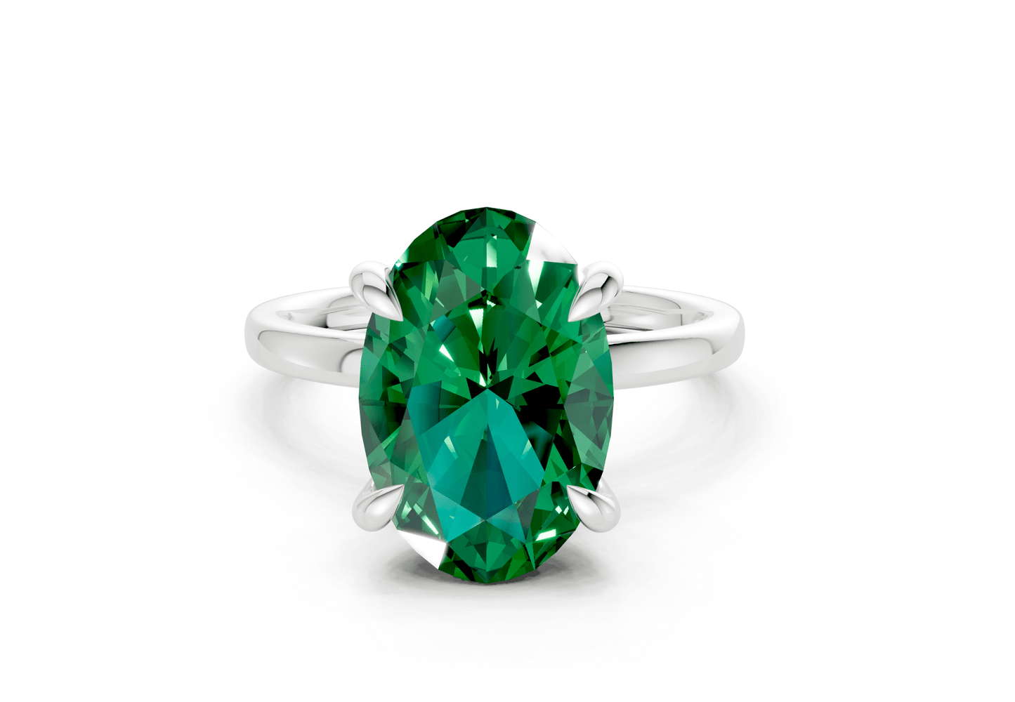 Solstice Emerald Gemstone Solitaire Oval Cut 1.8mm Engagement Ring