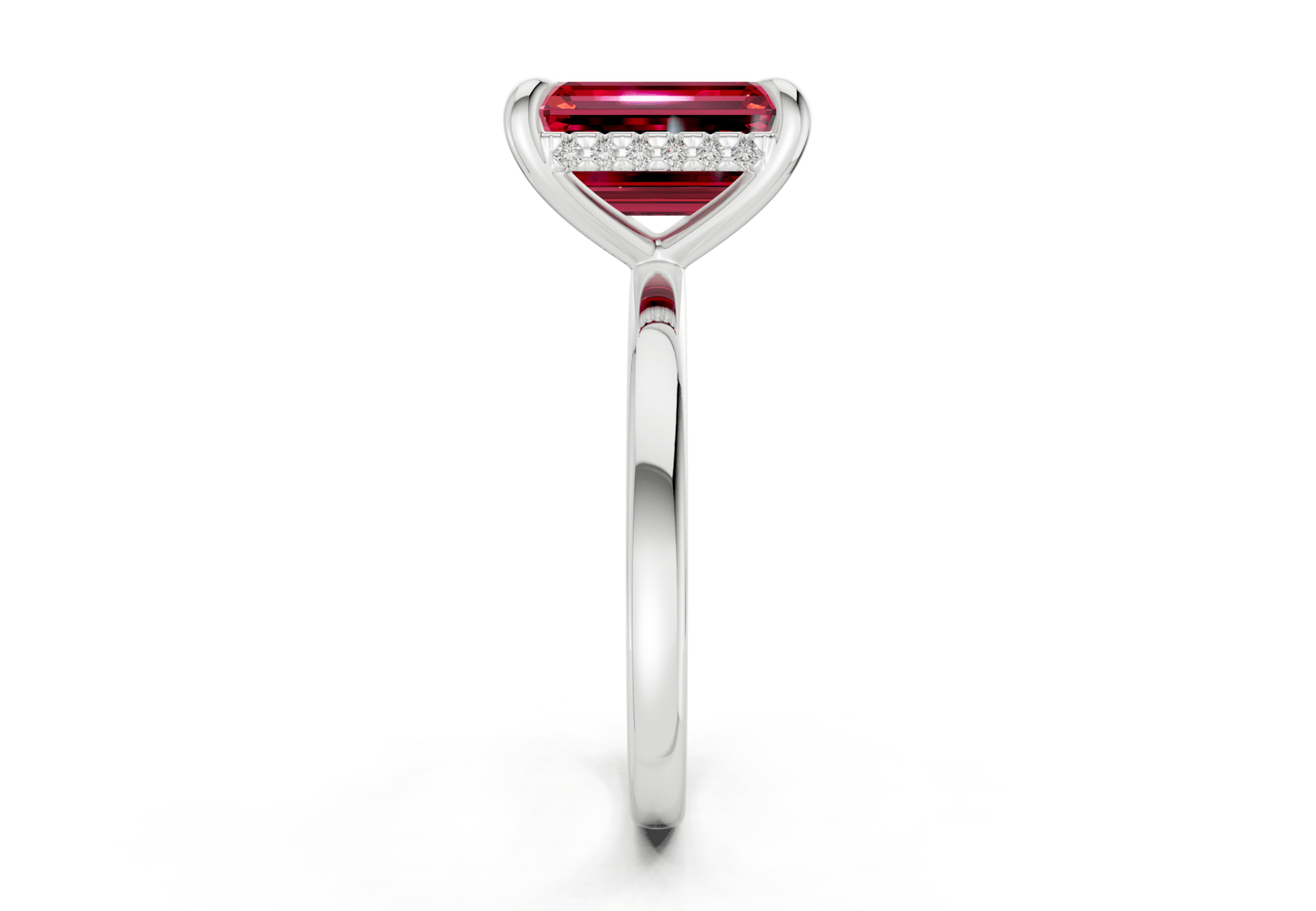 The Solstice Ruby Gemstone solitaire ring features a stunning Emerald-cut Ruby Gemstone in a sleek, minimalist setting. Designed to let the diamond shine, this piece embodies modern sophistication with timeless appeal. Perfect for those who appreciate refined simplicity, with the option for custom engraving to make it uniquely yours.