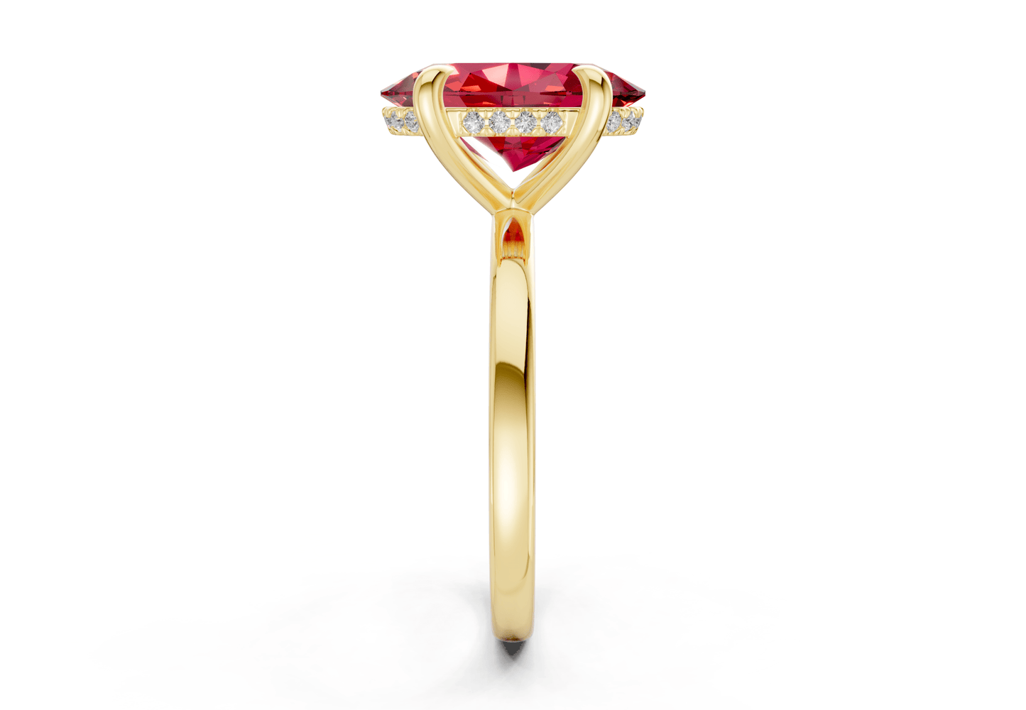 The Solstice Ruby Gemstone solitaire ring features a stunning Oval-cut Ruby Gemstone in a sleek, minimalist setting. Designed to let the diamond shine, this piece embodies modern sophistication with timeless appeal. Perfect for those who appreciate refined simplicity, with the option for custom engraving to make it uniquely yours.
