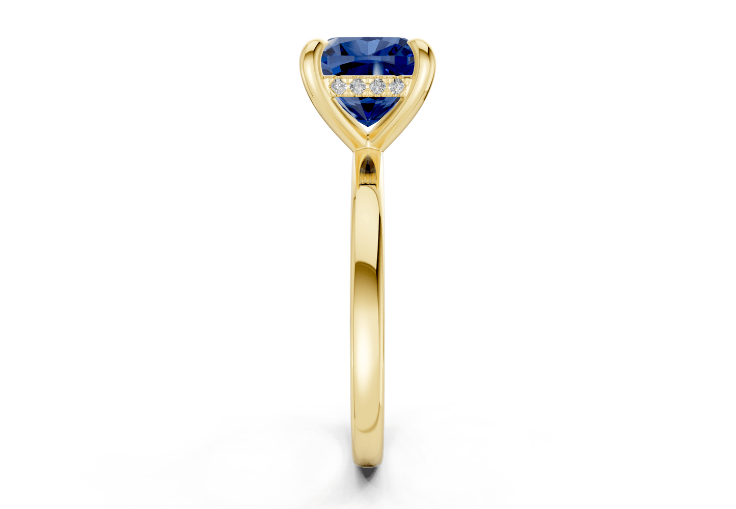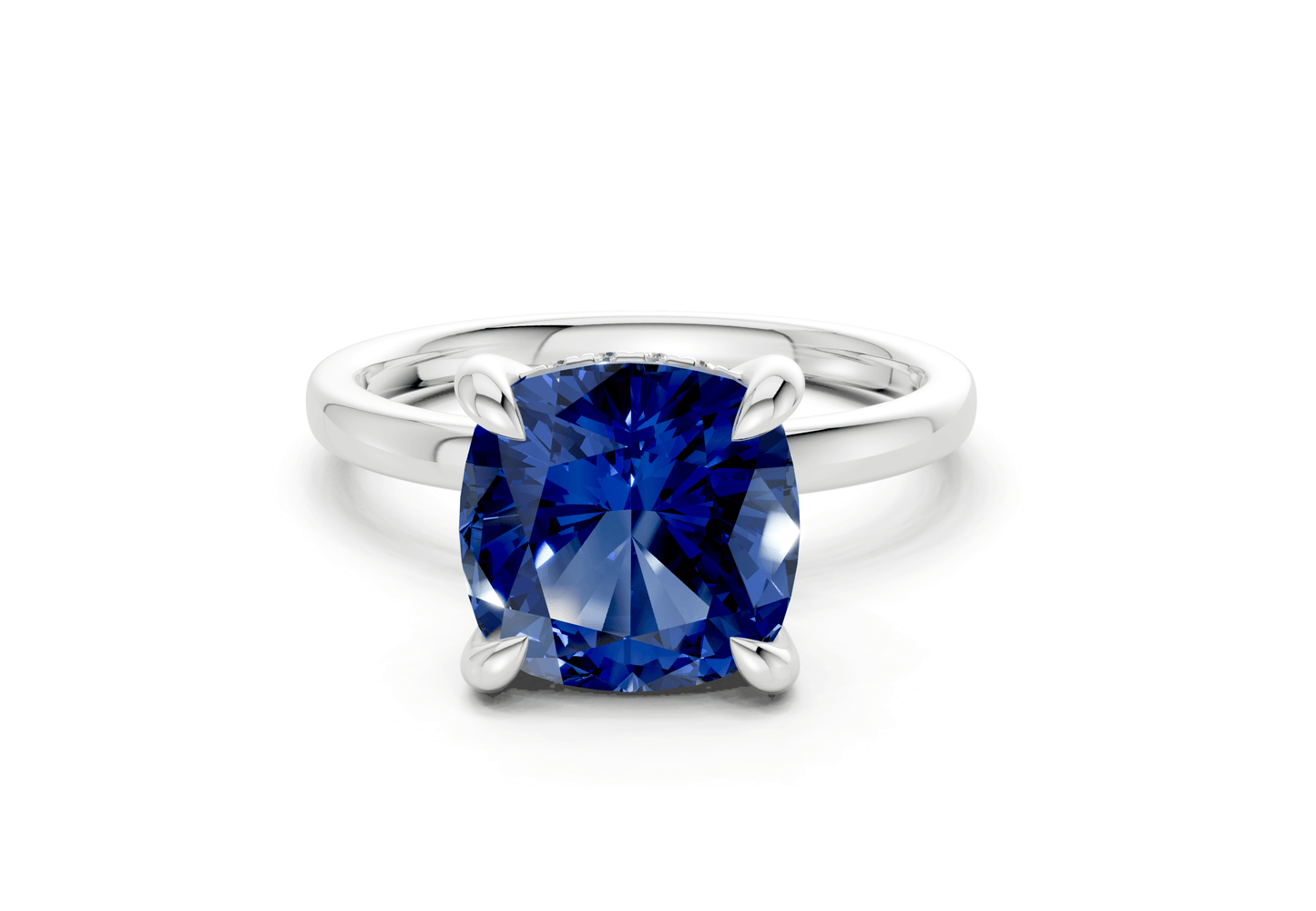 The Solstice Sapphire Gemstone solitaire ring features a stunning Cushion Squareuare-cut Sapphire Gemstone in a sleek, minimalist setting. Designed to let the diamond shine, this piece embodies modern sophistication with timeless appeal. Perfect for those who appreciate refined simplicity, with the option for custom engraving to make it uniquely yours.