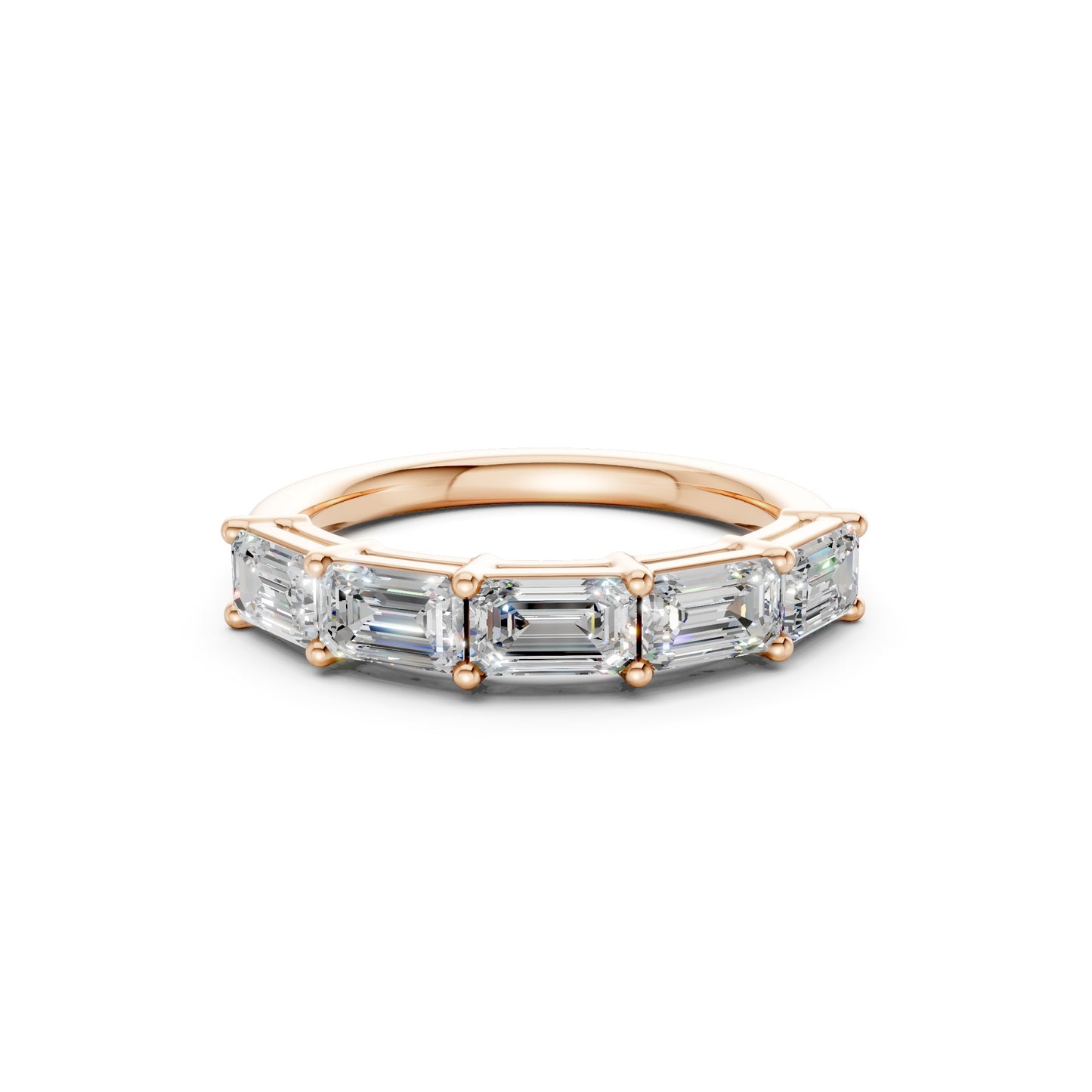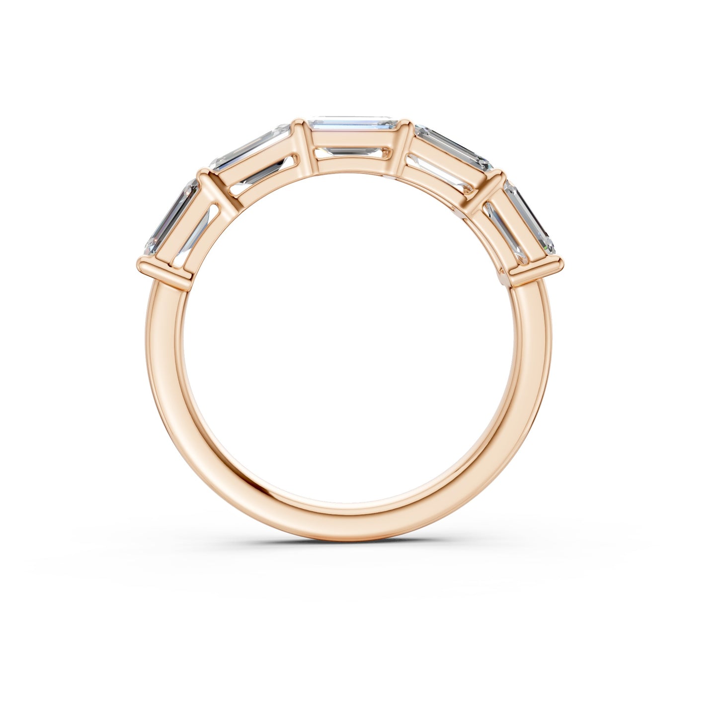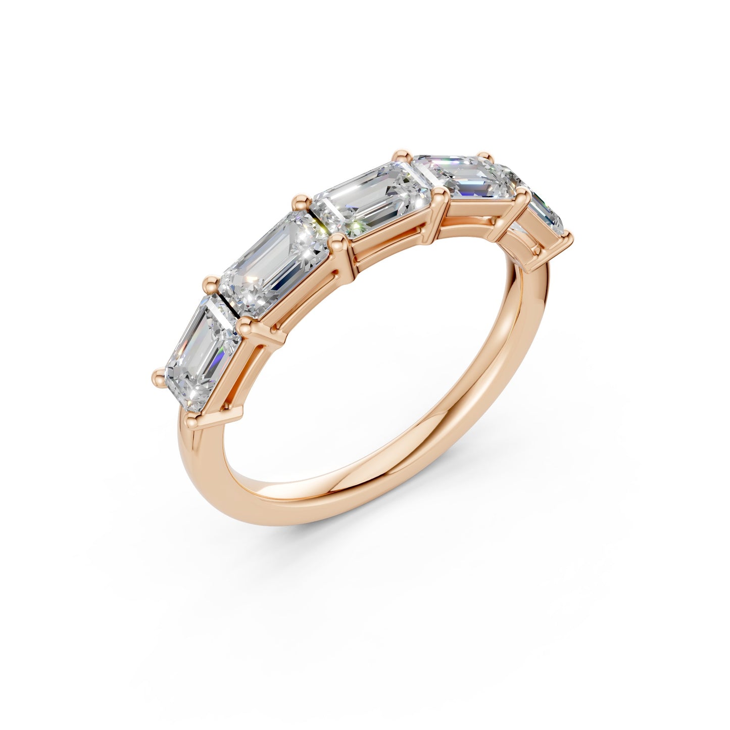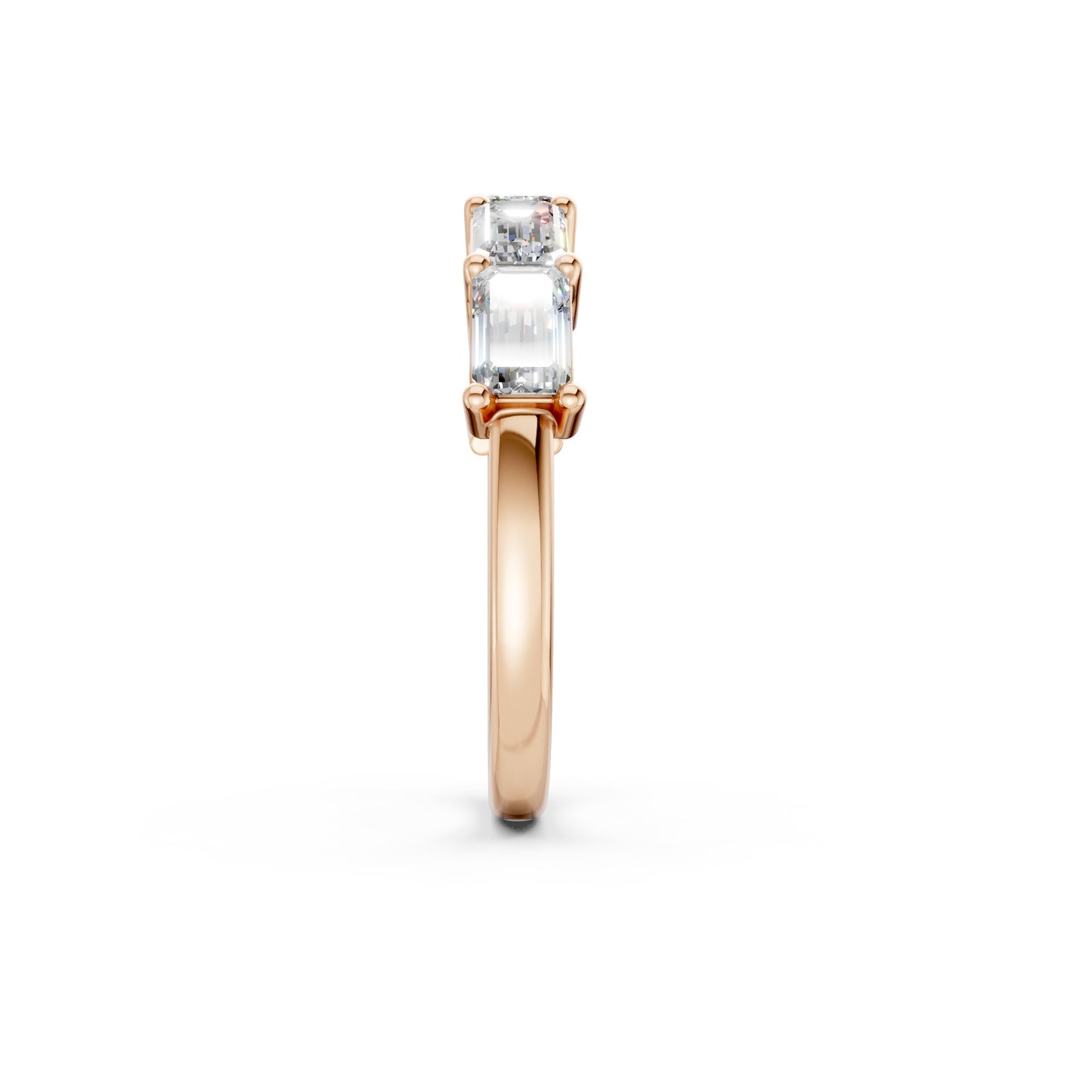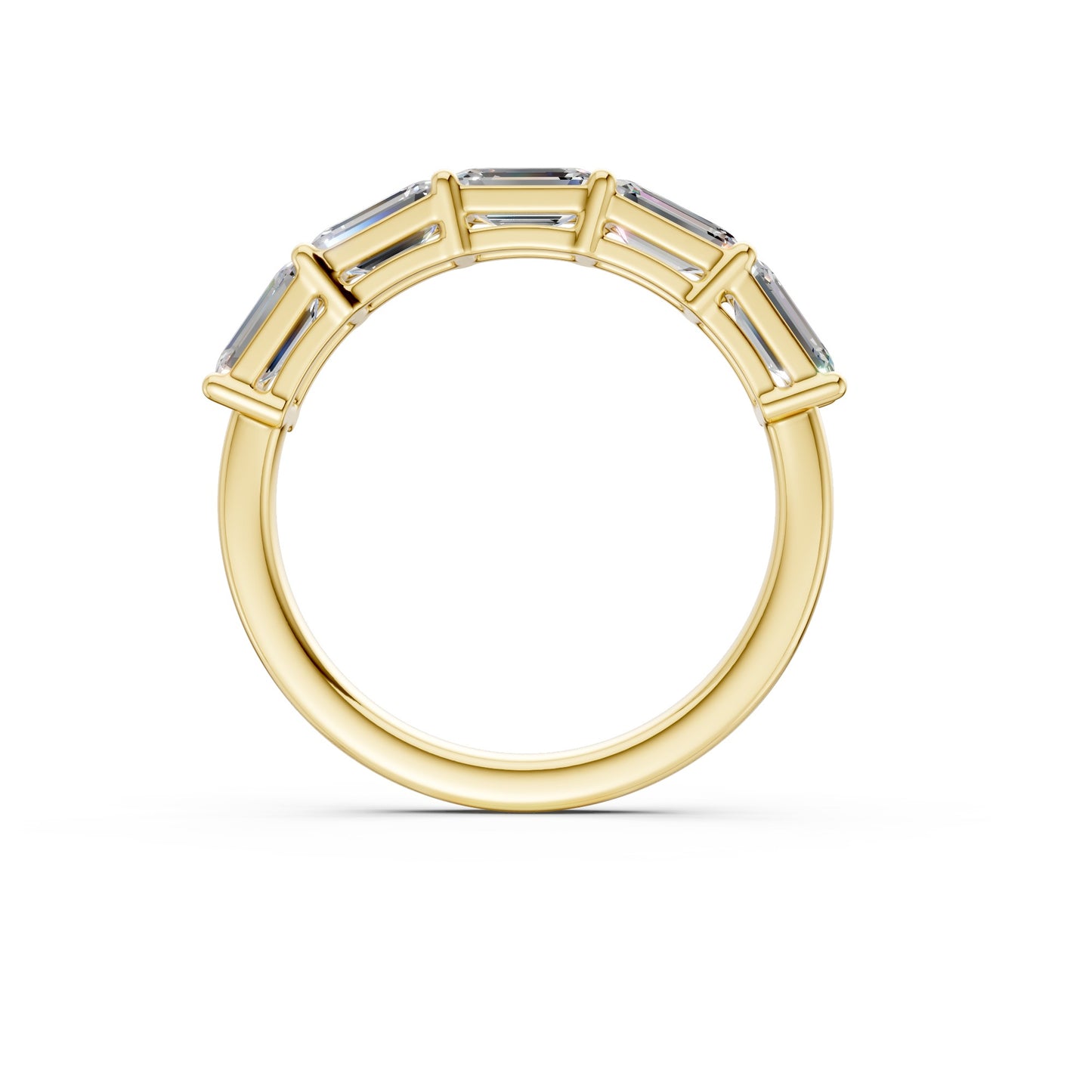The Fifth Avenue Five is a timeless five-stone diamond band featuring 1.50ct total weight of emerald-cut lab diamonds, each hand-matched for EF color and VVS2–VS1 clarity. Set halfway around a thicker, more durable shank, this design balances clean geometry with exceptional light return. The emerald cuts create a refined, elongated sparkle, while the sturdy band ensures lasting comfort and everyday wearability. Crafted to order in 14K, 18K, or platinum, this band is an elegant choice for stacking or wearing on its own.