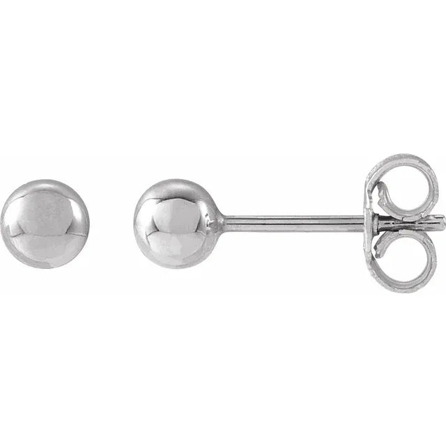 Every pair of Luna Gold Studs is handcrafted in New York from solid 14K recycled gold. Each sphere is machine-formed for perfect roundness, then hand-polished to a mirror finish. 14K gold contains 58.3% pure gold alloyed for strength and durability — it will not tarnish, fade, or turn skin green. White gold is rhodium-plated for a bright, platinum-like appearance.