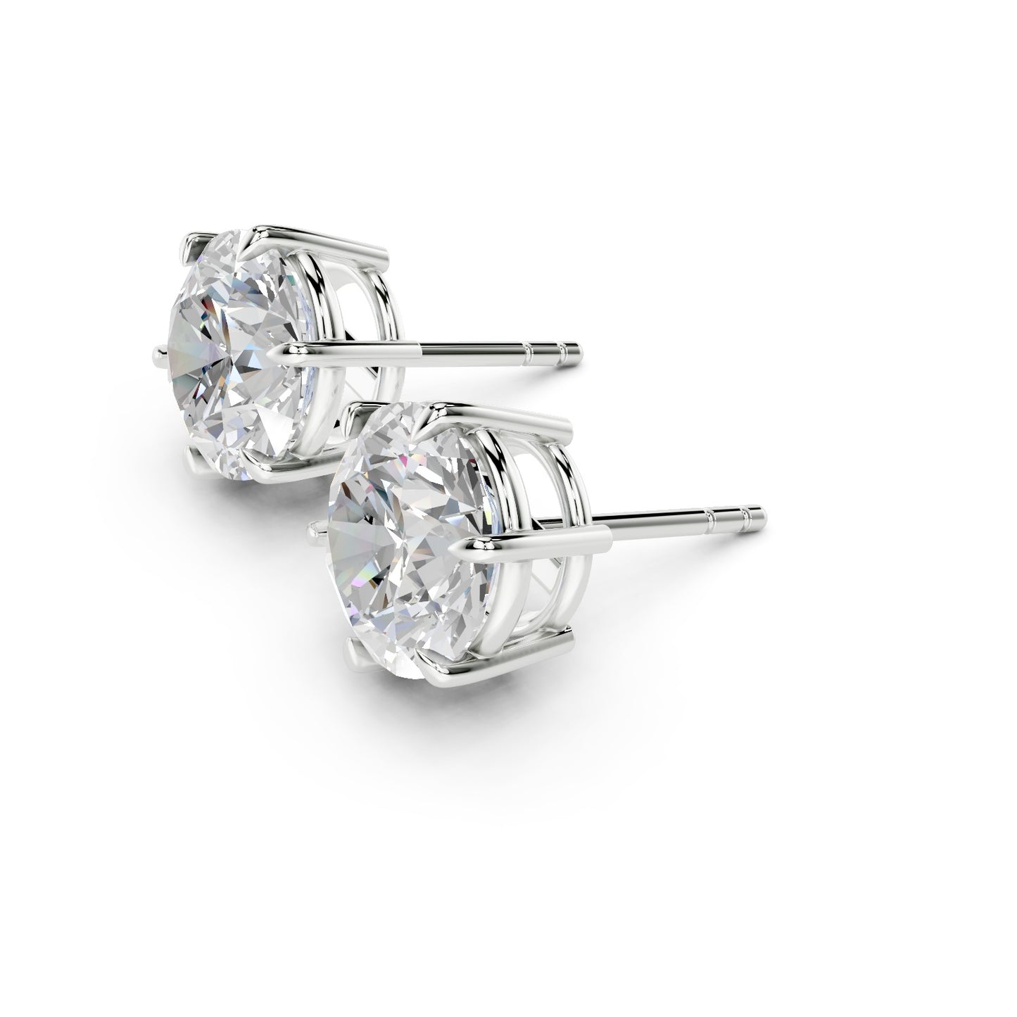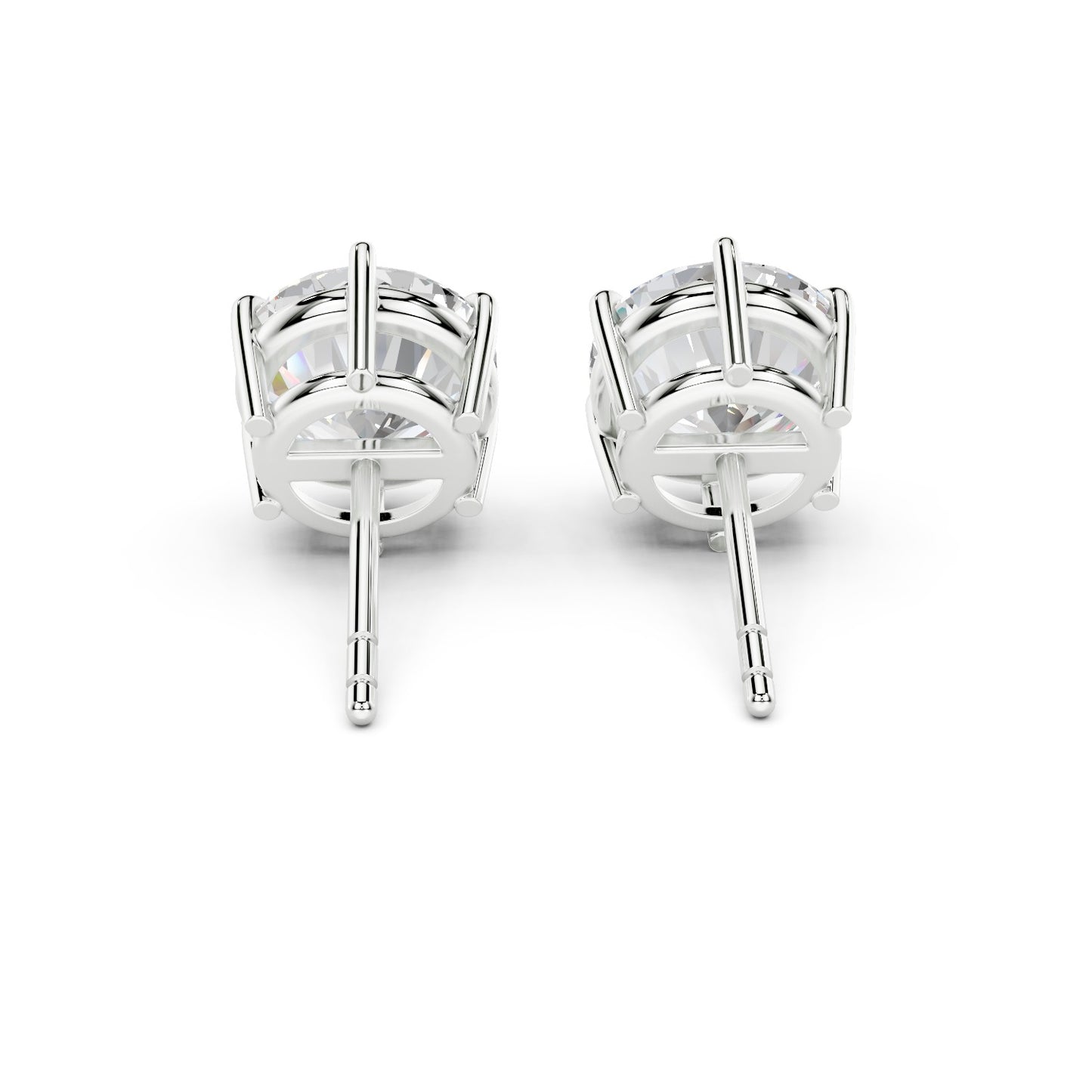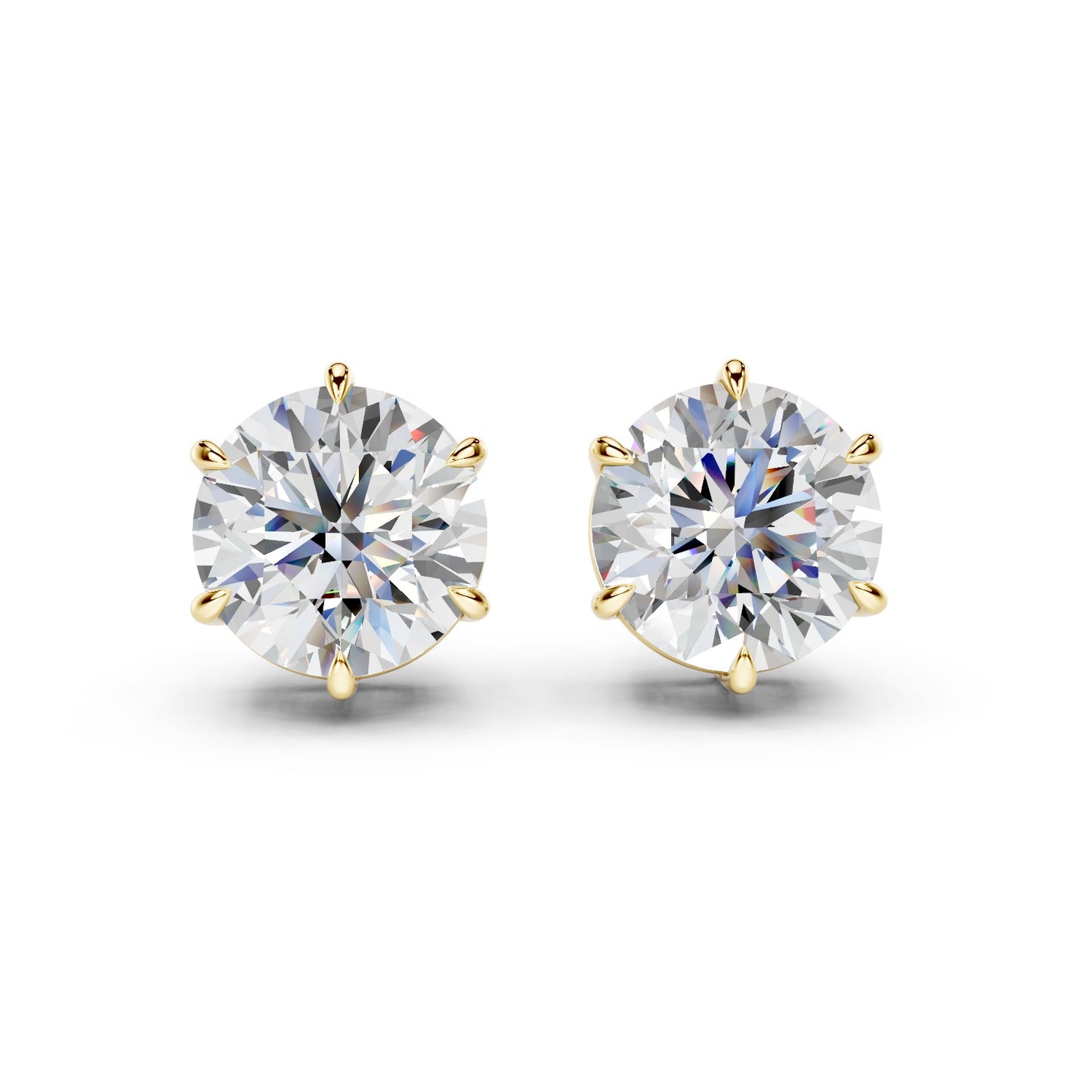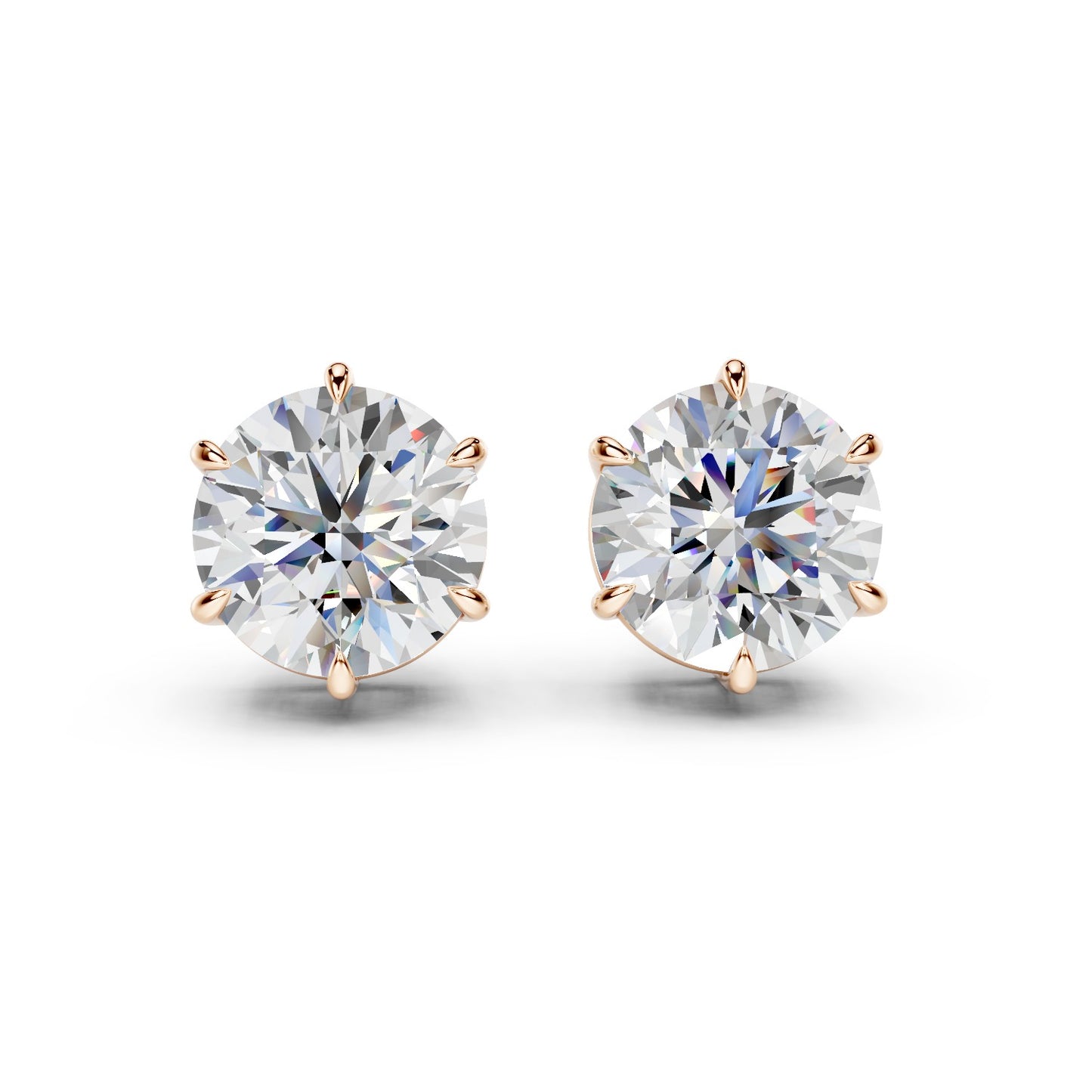 Handcrafted in New York by Ring Premier's skilled jewelers, these studs draw on the most iconic diamond mount in jewelry history — the six-prong crown. Six individual prongs grip each diamond just below the girdle, creating a regal coronet silhouette that elevates the stone above the ear. The additional prongs distribute holding force more evenly than a four-prong mount, reducing the risk of a prong catching and bending — making the Vienna the most secure stud setting in the collection. Despite the extra metal contact, the open gallery beneath the crown allows light to enter from every direction — through the crown facets above, through the pavilion below, and through the open sides — preserving exceptional brilliance (white light return), fire (spectral dispersion), and scintillation (the flashes of light you see as the earring moves).