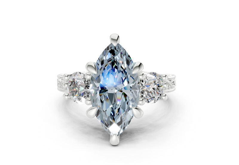 The Zara Blue Diamond ring showcases a stunning Marquise-cut Blue diamond in a vintage-inspired setting, blending classic details with enduring sophistication. Designed for those who love the charm of old-world elegance, this piece offers a timeless beauty that never fades. Custom engraving options make it uniquely yours.