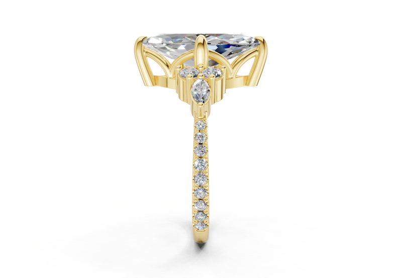 The Zephyrine Diamond ring highlights a stunning touch of sparkle, making it a perfect choice for anyone seeking a refined yet timeless look. Custom engraving options are available for a personal touch. Marquise-cut diamond, set in a delicate accent setting that enhances its natural brilliance. Designed to appreciate sophistication, this ring beautifully balances modern style with classic charm. The carefully arranged accents add just the right